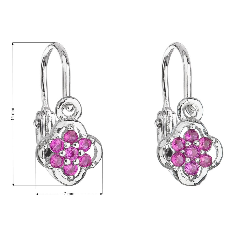 Parametre strieborných detských náušníc visiace so zirkónom ružová kvietka 11177.3