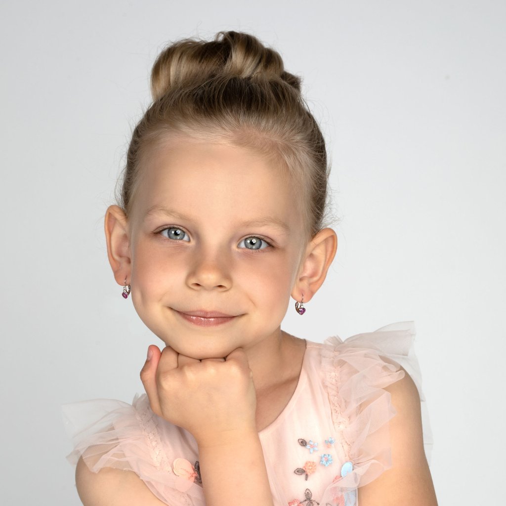 Náušnice visiace so srdcom sú vyrobené zo striebra rýdzosti 925/1000, ktorého povrch je upravený ródiom. Ródium šperk chráni proti sčerneniu, zožltnutiu alebo poškriabaniu, čo je u detí veľká výhoda. Náušnice zdobia ružový zirkón v tvare srdca a jeden menší biely okrúhly zirkón.