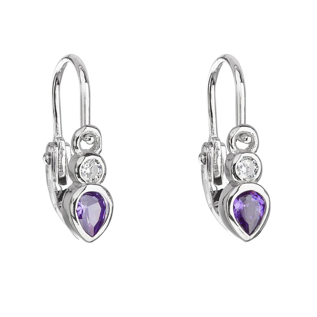 Strieborné detské náušnice visiace so zirkónom vo fialovej farbe 11197.3