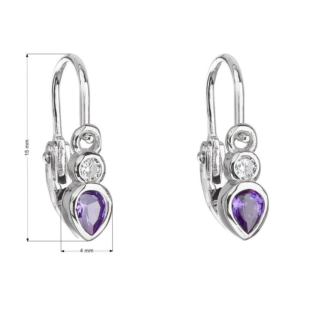 Parametre strieborných detských visiacich náušníc so zirkónom vo fialovej farbe 11197.3