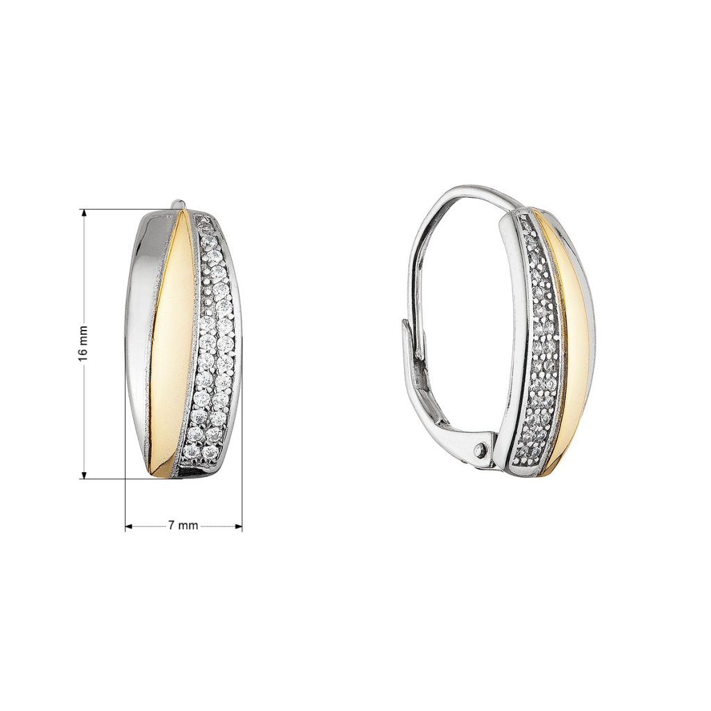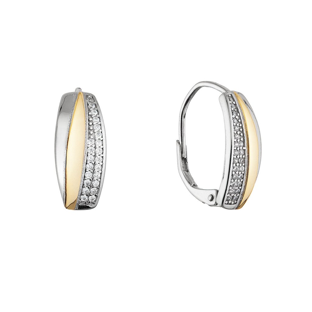Náušnice majú unikátny trojcestný dizajn, kde strieborná časť je kombinovaná so zlatou farbou a vysadenými kamienkami vo farbe crystal. Kamienky sú umiestnené v dvoch radoch na bočnej strane a postupne splývajú do jedného radu smerom nahor. Náušnice majú praktické zapínanie na klapku a neobsahujú nikel , takže sú vhodné pre každého. Sú ideálnym darčekom alebo elegantným doplnkom pre špeciálnu príležitosť.