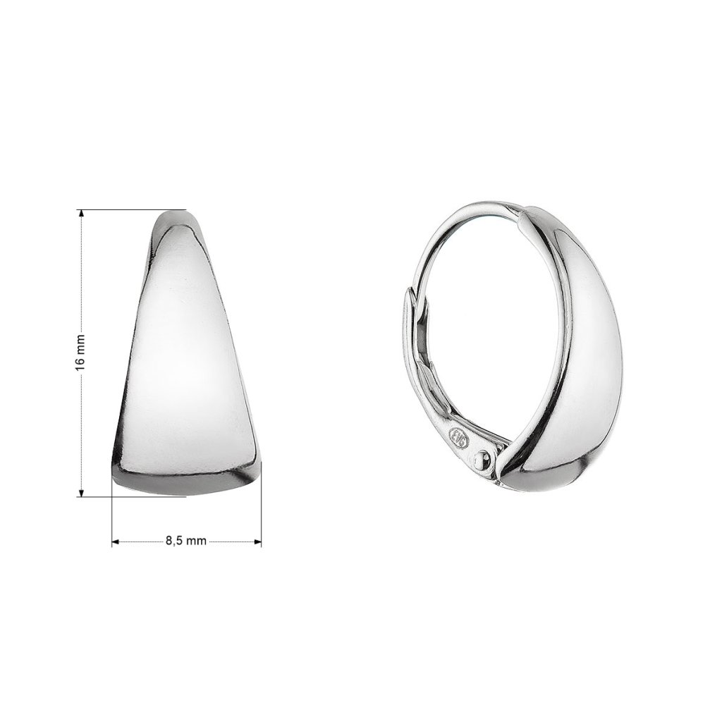 Šperk je vyrobený zo striebra rýdzosti 925/1000, ktorého povrch je opatrený ródiom. Ródium náušnice chráni proti sčerneniu, zožltnutiu i poškriabaniu. Náušnice majú jednoduché línie bez zdobenia , ich precízne spracovaný tvar pôsobí elegantne a zároveň nadčasovo – ideálny pre ženy, ktoré milujú originálne a výrazné doplnky. Praktické zapínanie na klapku zaisťuje pohodlné nosenie a spoľahlivé uchytenie.