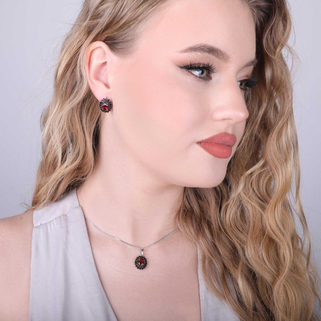 Luxusné strieborné náušnice bohato vysadené pravými granátmi zvýraznia každú dámu!