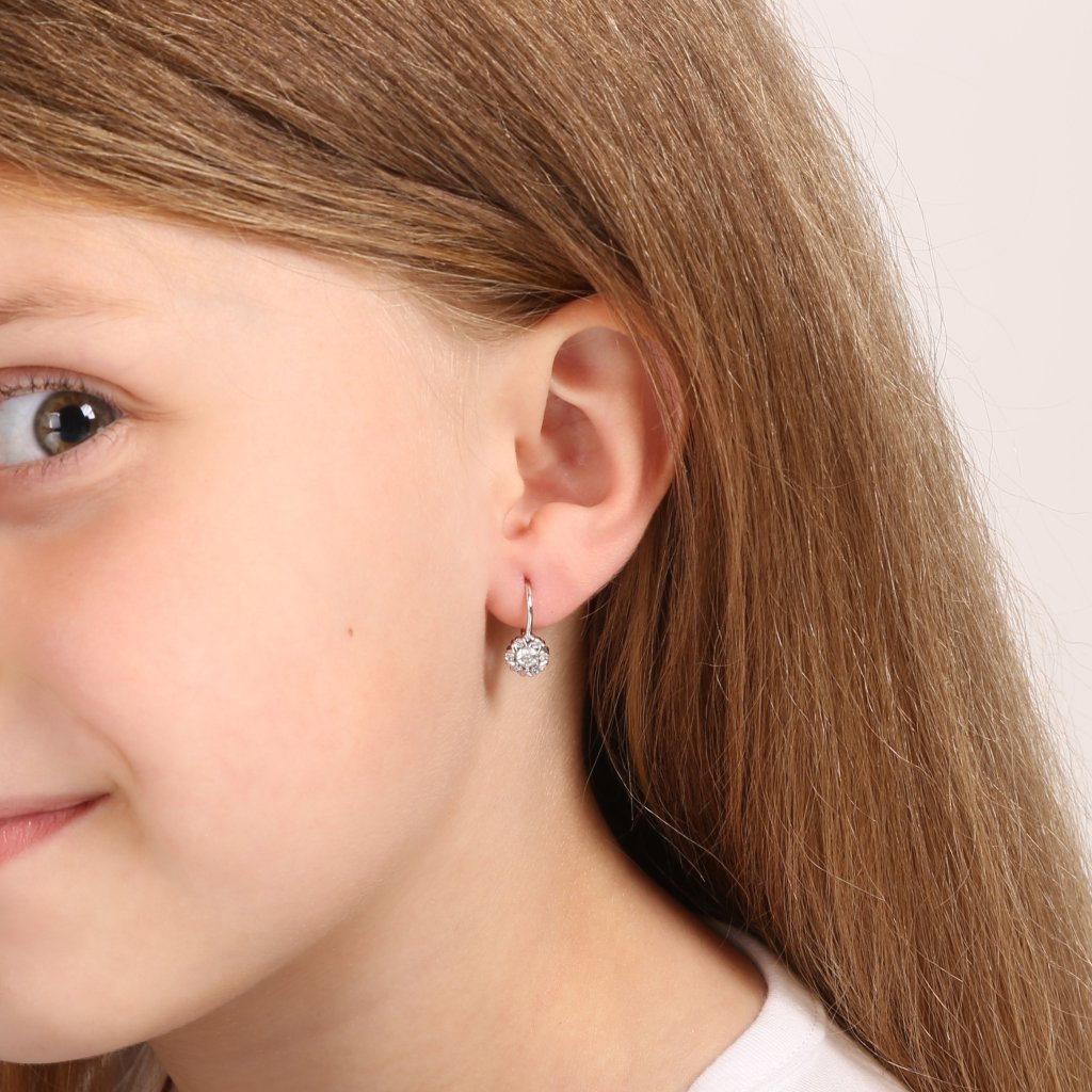 Zháňate roztomilé náušničky pre svoje malé dievčatko? Čo napríklad okrúhle visiace náušnice vysadené trblietavými zirkónmi.Visiace náušnice 11474.1 sú vyrobené zo striebra rýdzosti 925/1000 , ktorého povrch je upravený ródiom . Rhodium šperk ochráni proti sčernaniu, zožltnutiu alebo poškriabaniu. Náušnice majú dĺžku 13 mm a každá z nich je vysadená priezračnými zirkónmi. Náušnice majú zapínanie na klapku. Šperk neobsahuje nikel , a tak sa nemusíte obávať žiadne alergické reakcie.