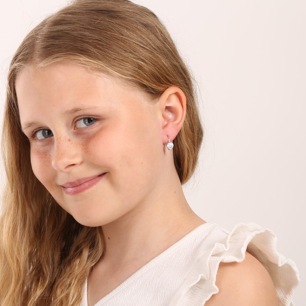 Zháňate roztomilé náušničky pre svoje malé dievčatko? Čo napríklad visiace náušnice vysadené trblietavými zirkónmi v tvare srdca.Visiace náušnice 11473.1 sú vyrobené zo striebra rýdzosti 925/1000, ktorého povrch je upravený ródiom. Rhodium šperk ochráni proti sčernaniu, zožltnutiu alebo poškriabaniu. Náušnice majú dĺžku 14 mm a každá z nich je vysadená priezračnými zirkónmi. Náušnice majú zapínanie na klapku. Šperk neobsahuje nikel, a tak sa nemusíte obávať žiadne alergické reakcie.