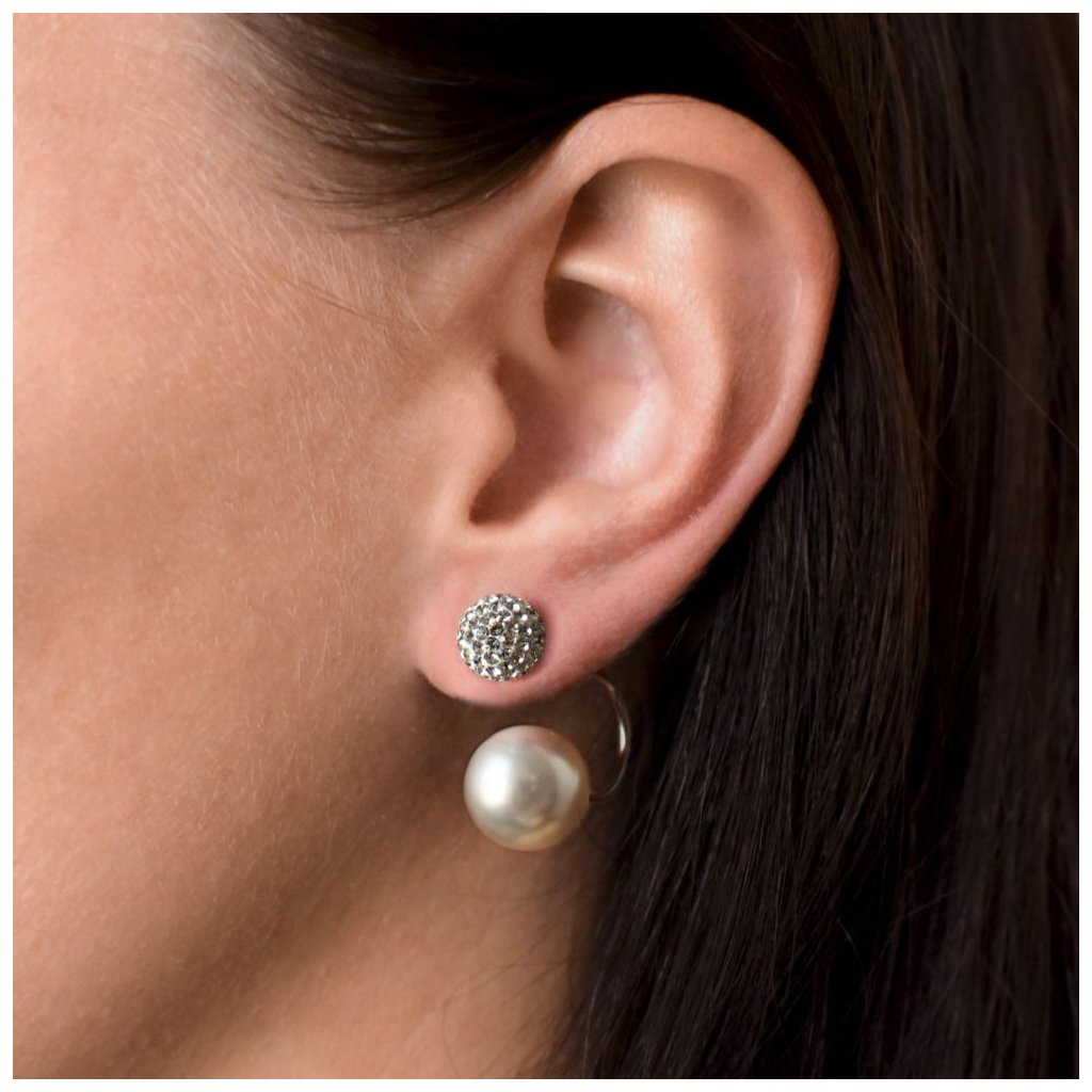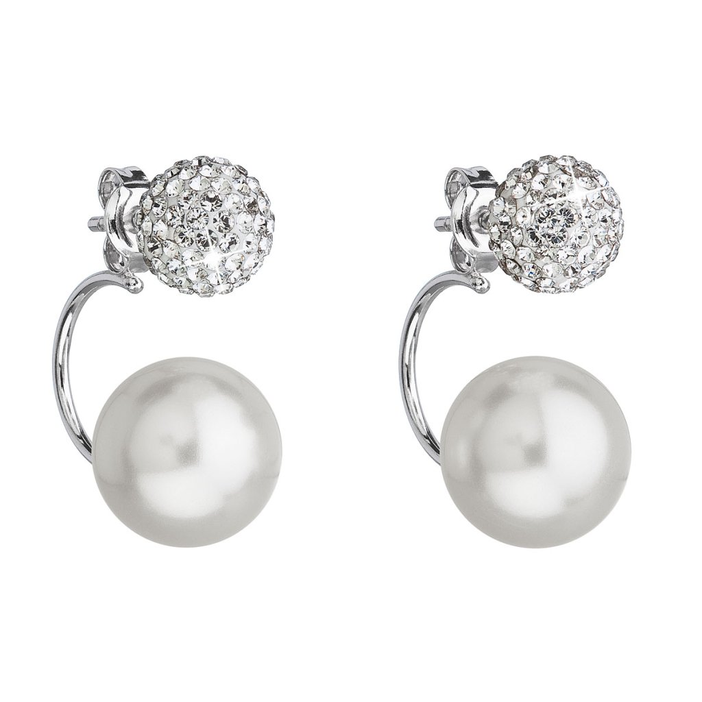 Náušnice 31179.1 zdobí gulička osadená Swarovski kryštálmi v bielej farbe a veľká syntetická biela perla.