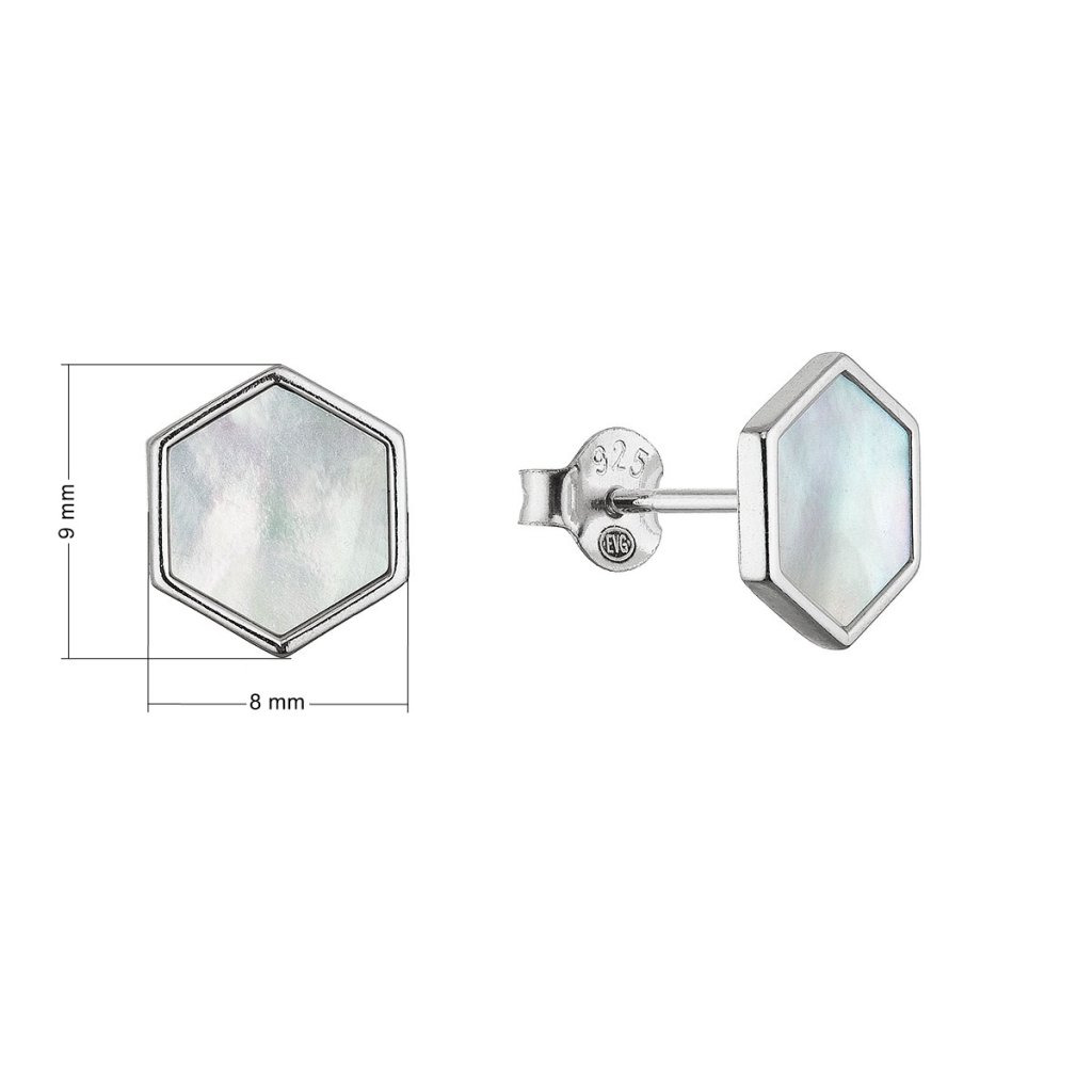 Strieborné náušnice hexagón s bielou perleťou 11689.1