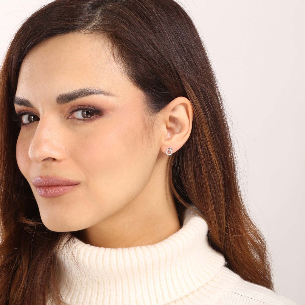 Originálne navrhnuté náušnice v tvare dvoch prepletených krúžkov skvele doplnia váš outfit.Strieborné náušnice 11414.1 o rýdzosti 925/1000 zdobia okrúhle zirkóny s nádherným leskom. Striebro je ošetrené ródiom, ktoré ho chráni proti zožltnutiu, sčernaniu i poškriabaniu. Keďže náušnice neobsahujú nikel, môžu ich bez obáv nosiť aj ľudia náchylní k alergickej reakcii. Zapínanie náušníc je na puzetku.