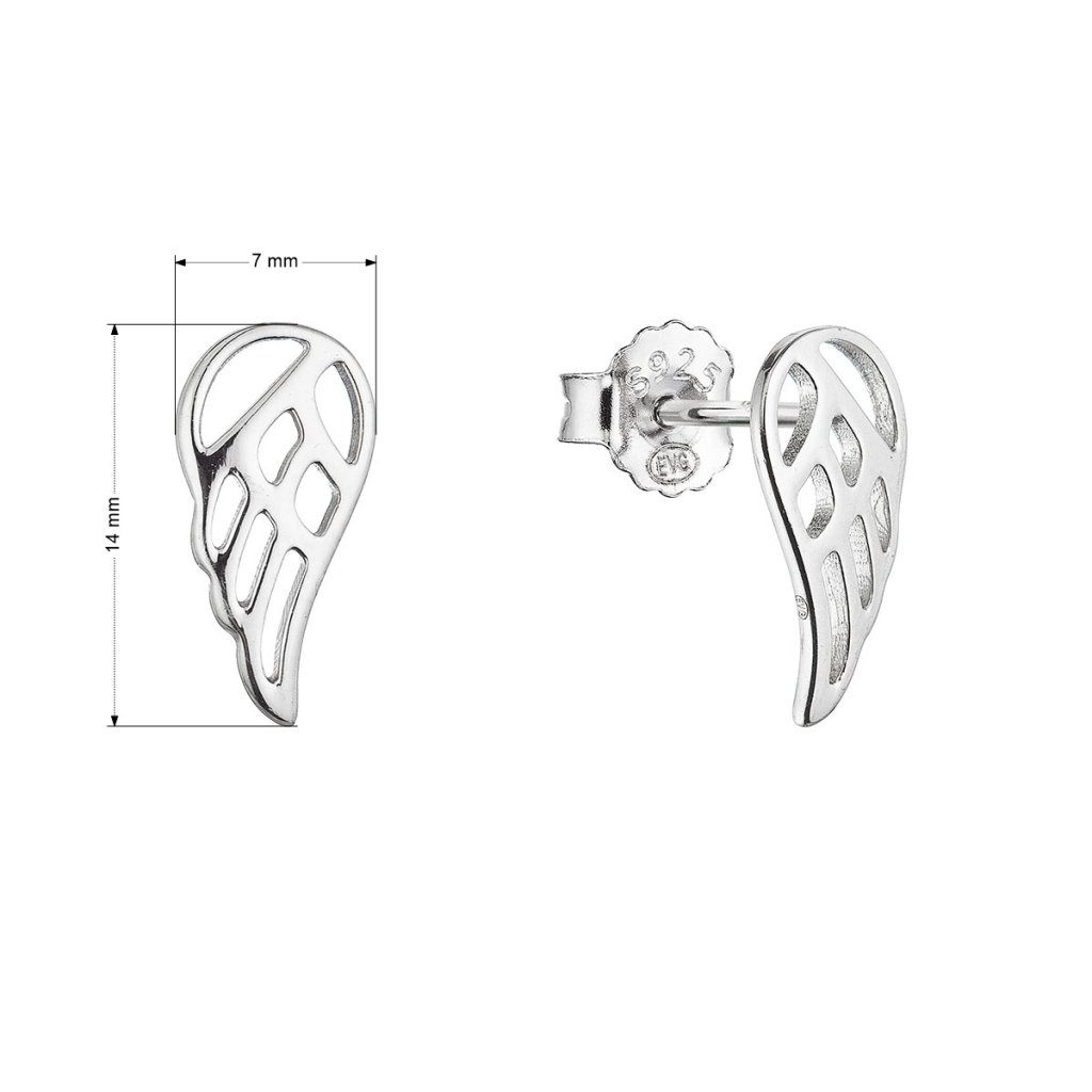 Šperk v tvare anjelských krídiel je skvelým darčekom pre osobu, ktorú chcete ochrániť. Môže ho totiž využiť nielen ako elegantný doplnok, ale aj ako talizman.Darujte originálne strieborné náušnice v tvare anjelských krídiel. Náušnice 61017 majú rýdzosť 925/1000 a sú ošetrené ródiom , ktorý šperk chráni proti sčerneniu a zožltnutiu. Šperk neobsahuje nikel. Náušnice sa zapínajú jednoducho na puzetku.