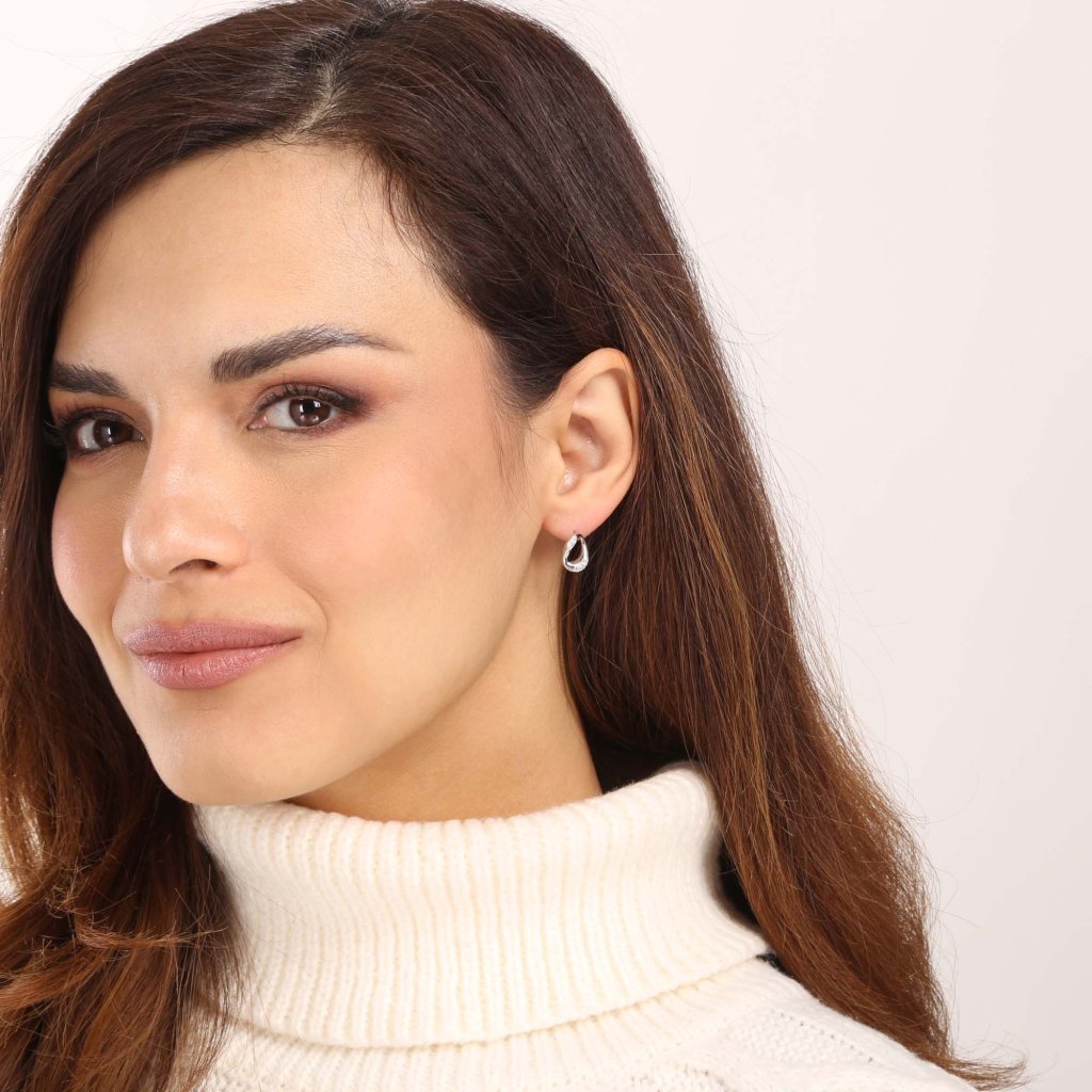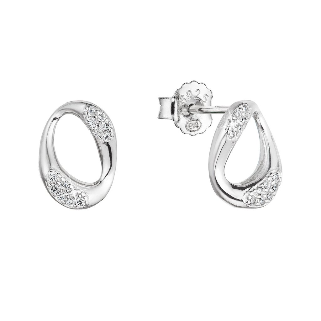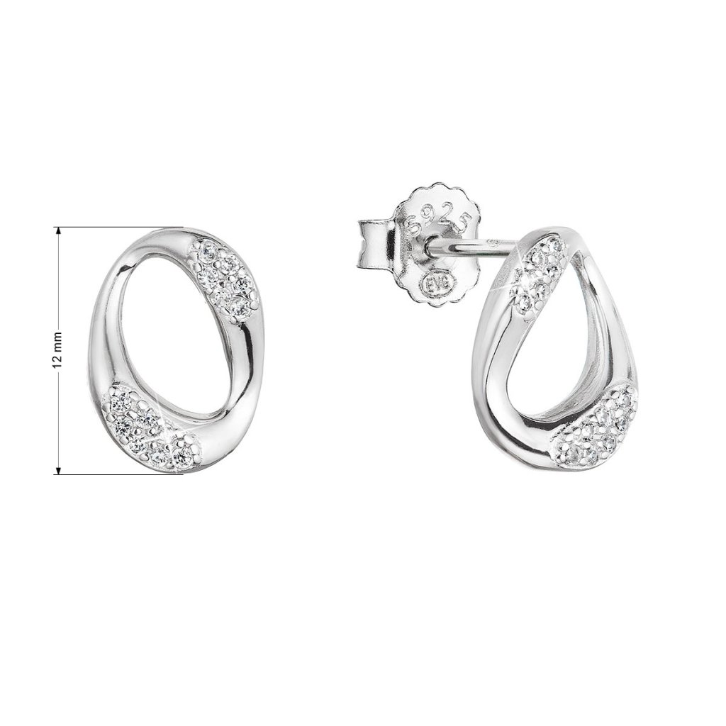 Strieborné náušnice v tvare oválikov dekorované trblietavými bielymi zirkónmi zaujmú na prvý pohľad.