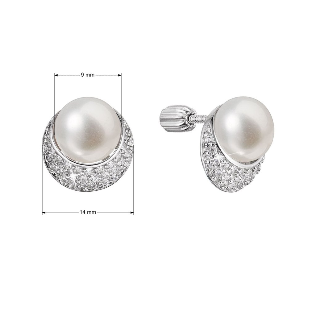 Strieborné náušnice kôstky polmesiac s riečnou perlou a zirkónmi bielej 21099.1B