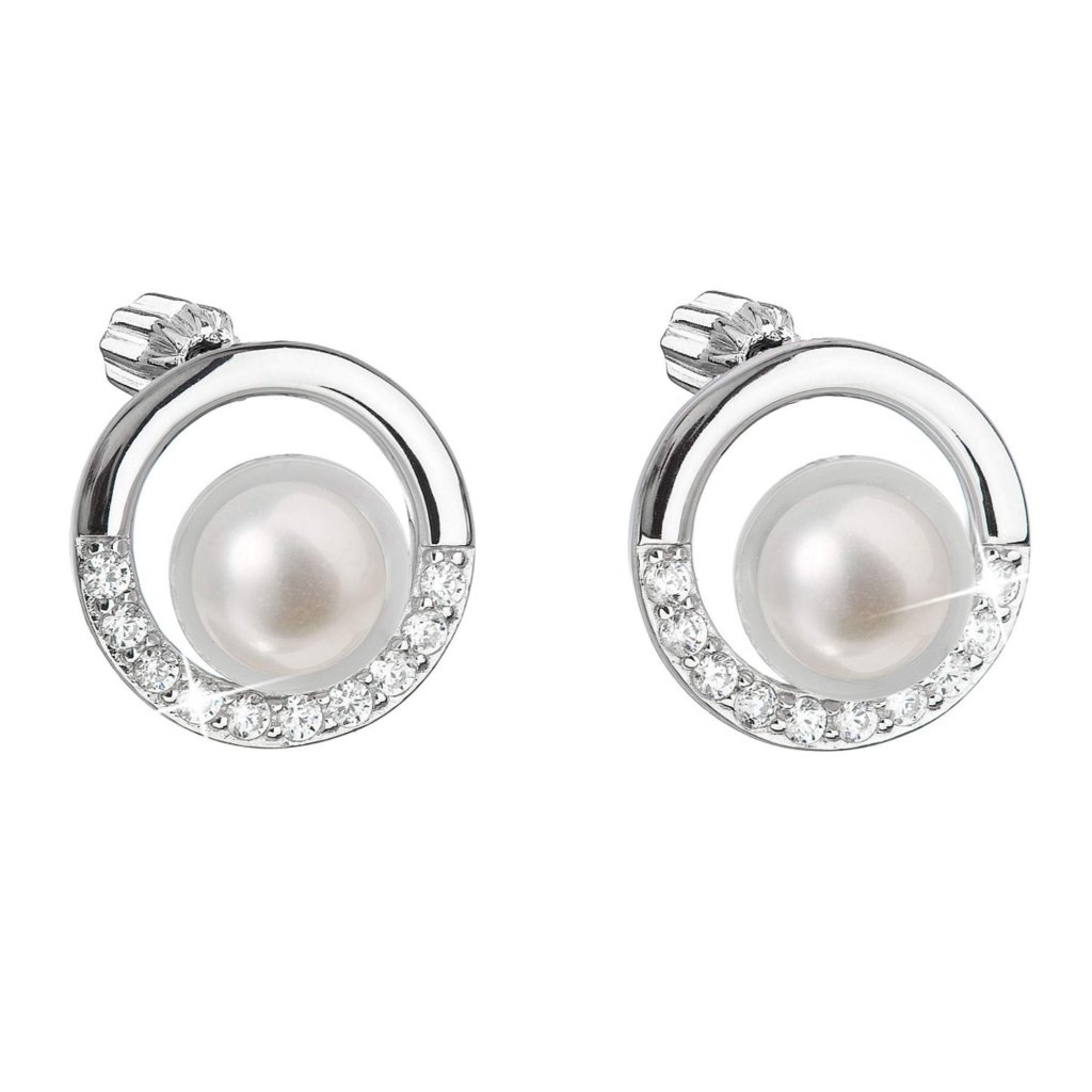 Strieborné náušnice kôstky s bielou riečnou perlou 21022.1B