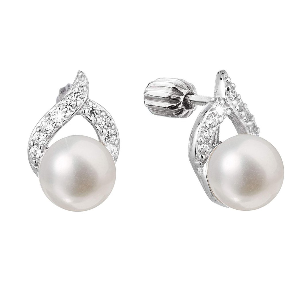 Strieborné náušnice kôstky s bielou riečnou perlou 21055.1