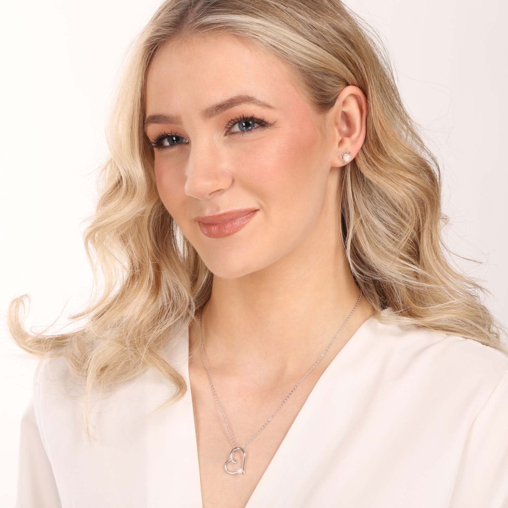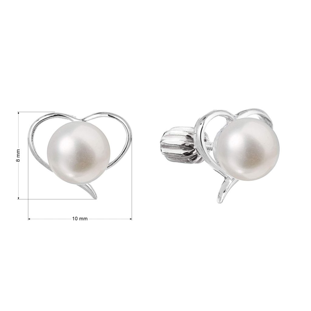 Roztomilé strieborné náušnice v tvare srdiečok zdobené pravou riečnou perlou osviežia váš každodenný outfit.