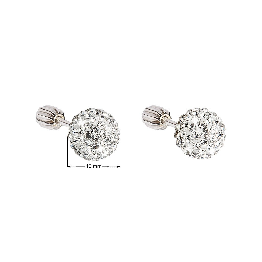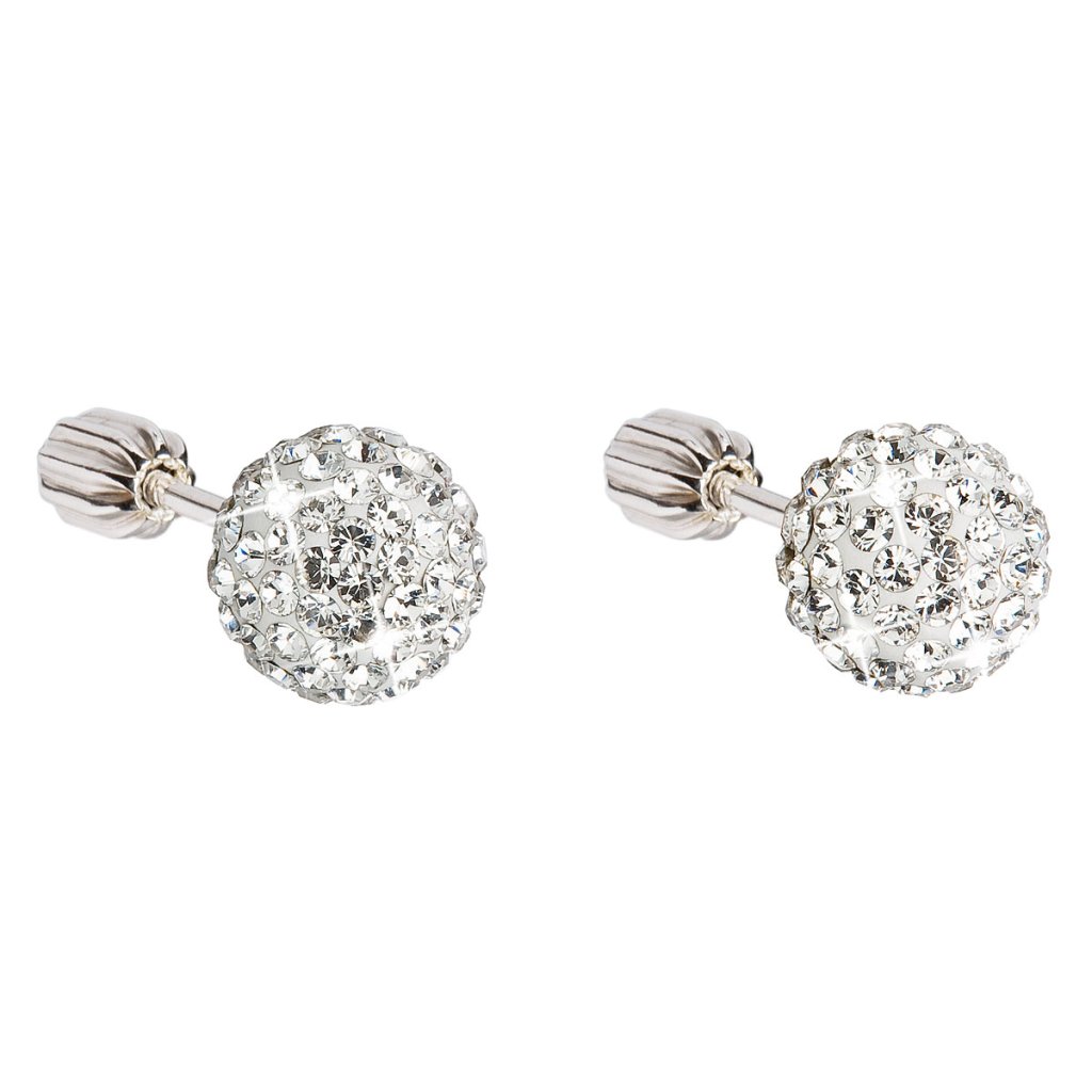 Strieborné náušnice kôstky s kryštálmi Swarovski biele okrúhle 31111.1