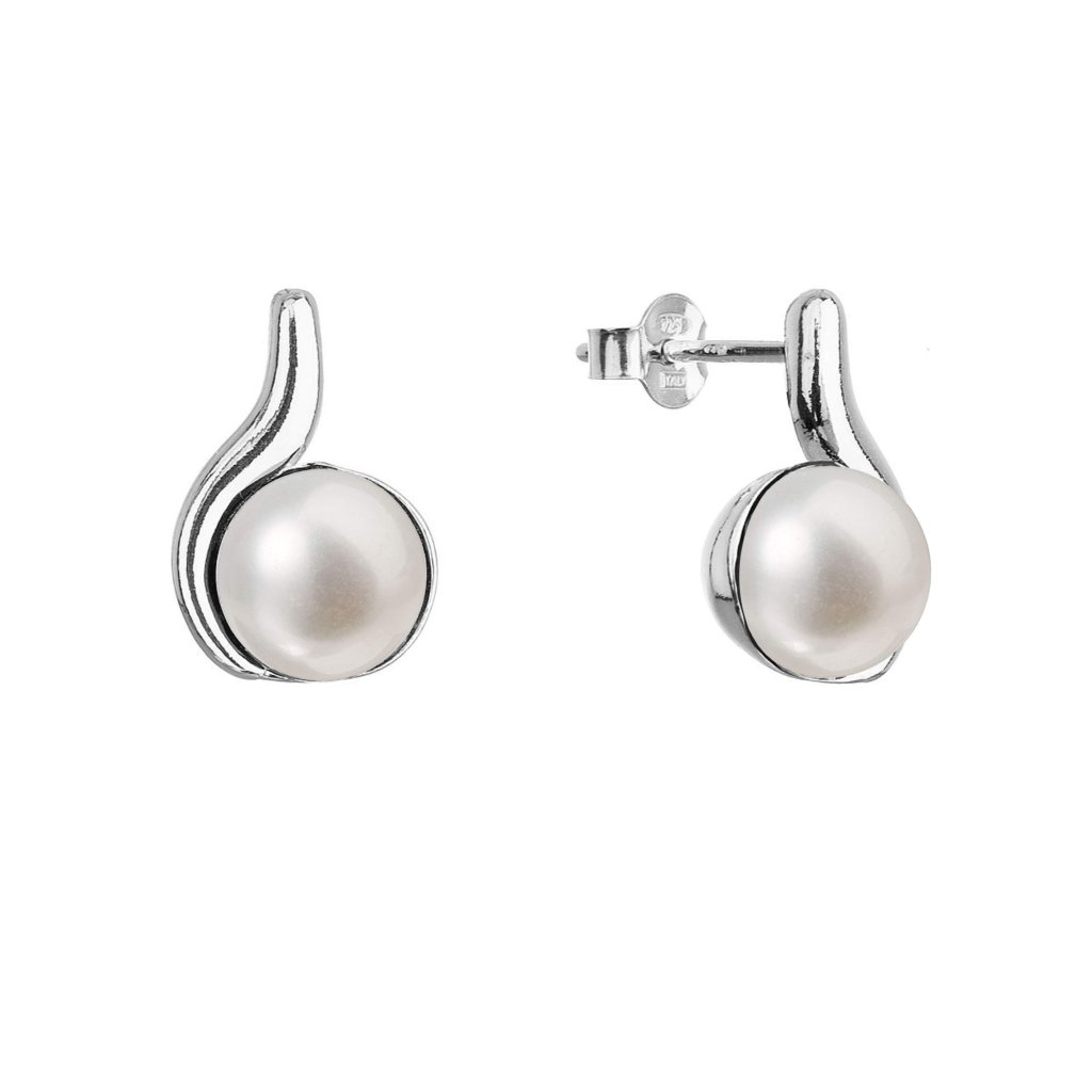 Strieborné náušnice kôstky s pravou riečnou perlou 21066.1 biele