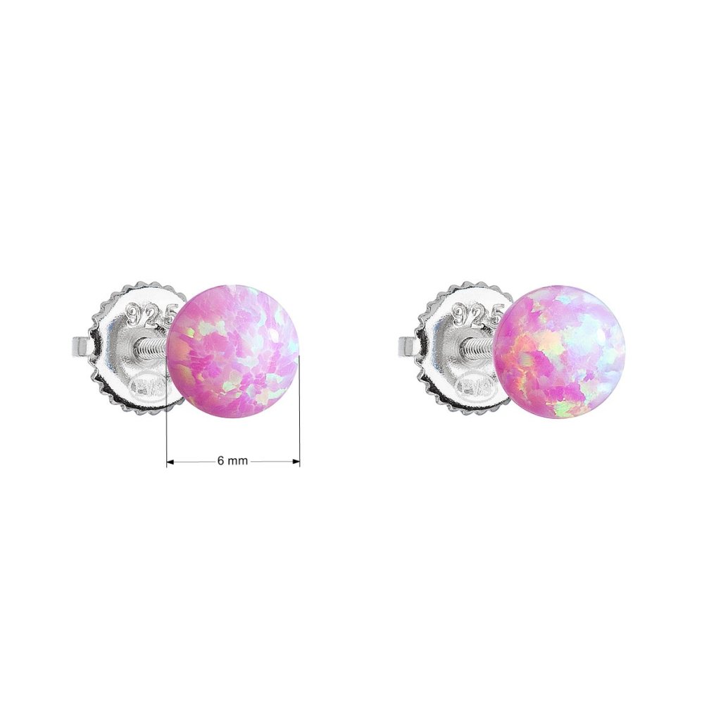 Parametre strieborných náušníc kôstky so syntetickým opálom ružové okrúhle 11246.3