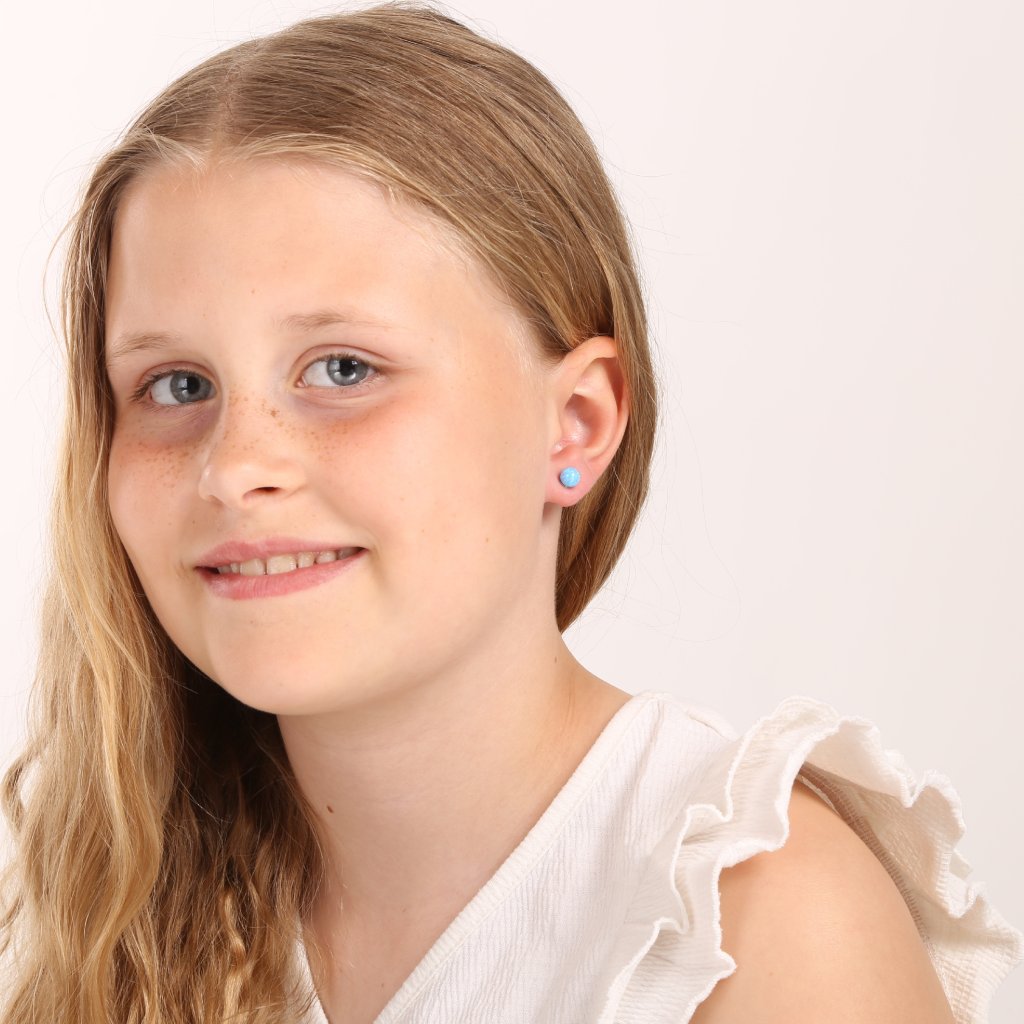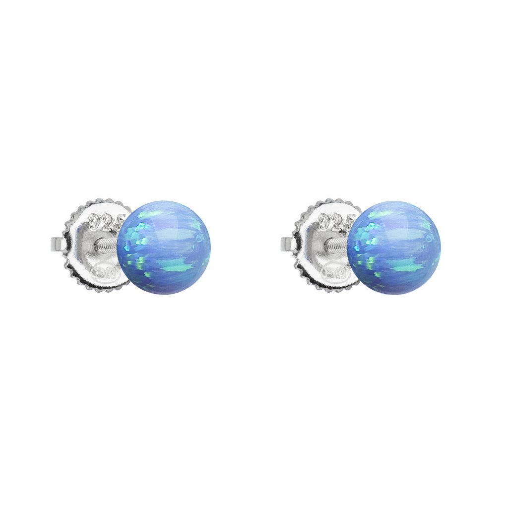 Parametre strieborných náušníc kôstky so syntetickým opálom svetlo modrej okrúhle 11246.3 lt. blue