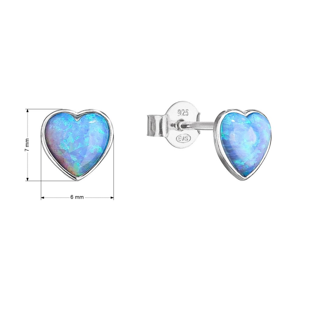 Parametre strieborných náušníc kôstky so syntetickým opálom svetlo modré srdce 11337.3