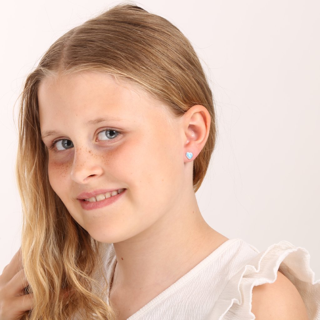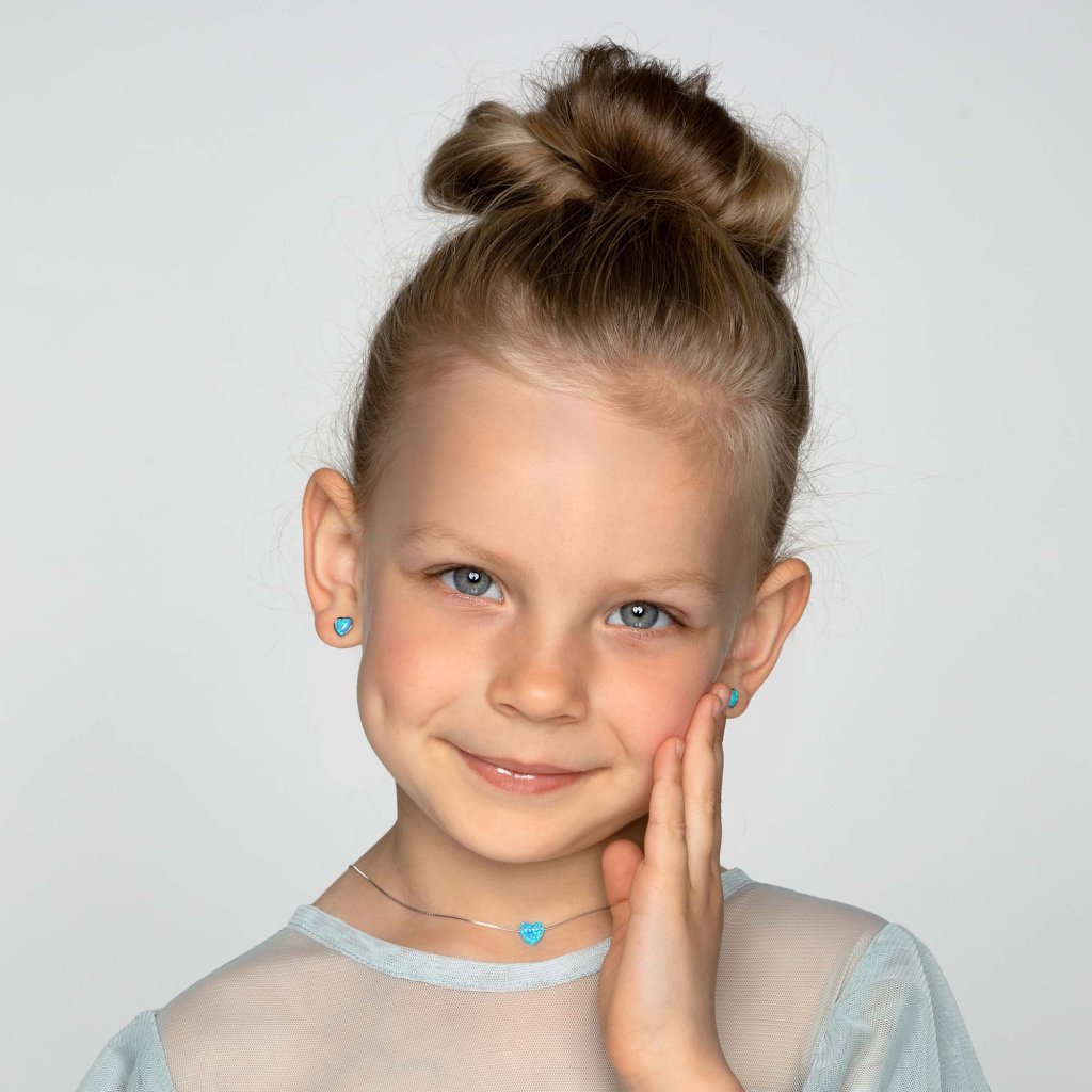 Strieborné náušnice kôstky, malé jemné srdiečka so syntetickým opálom.Náušnice srdiečkovej kôstky tvoríme zo striebra rýdzosti 925/1000, ktoré je upravené ródiom. Vďaka ródiu je šperk odolný proti sčernaniu, zožltnutiu alebo poškriabaniu. Náušnice tvoria jeden syntetický opál v tvare srdca, vo svetlo modrej farbe.