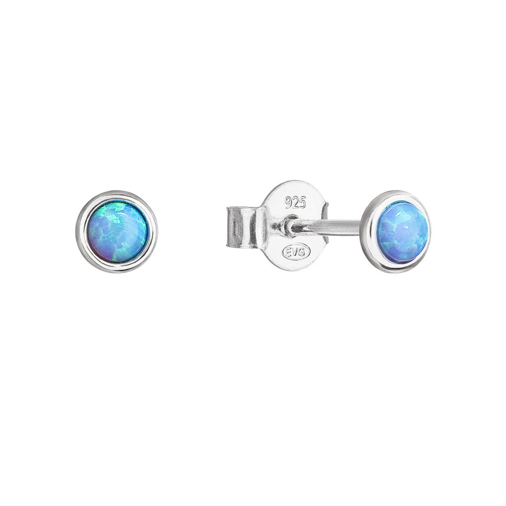 Strieborné náušnice kôstky so syntetickým opálom svetlomodré okrúhle 11338.3