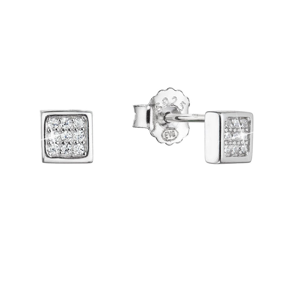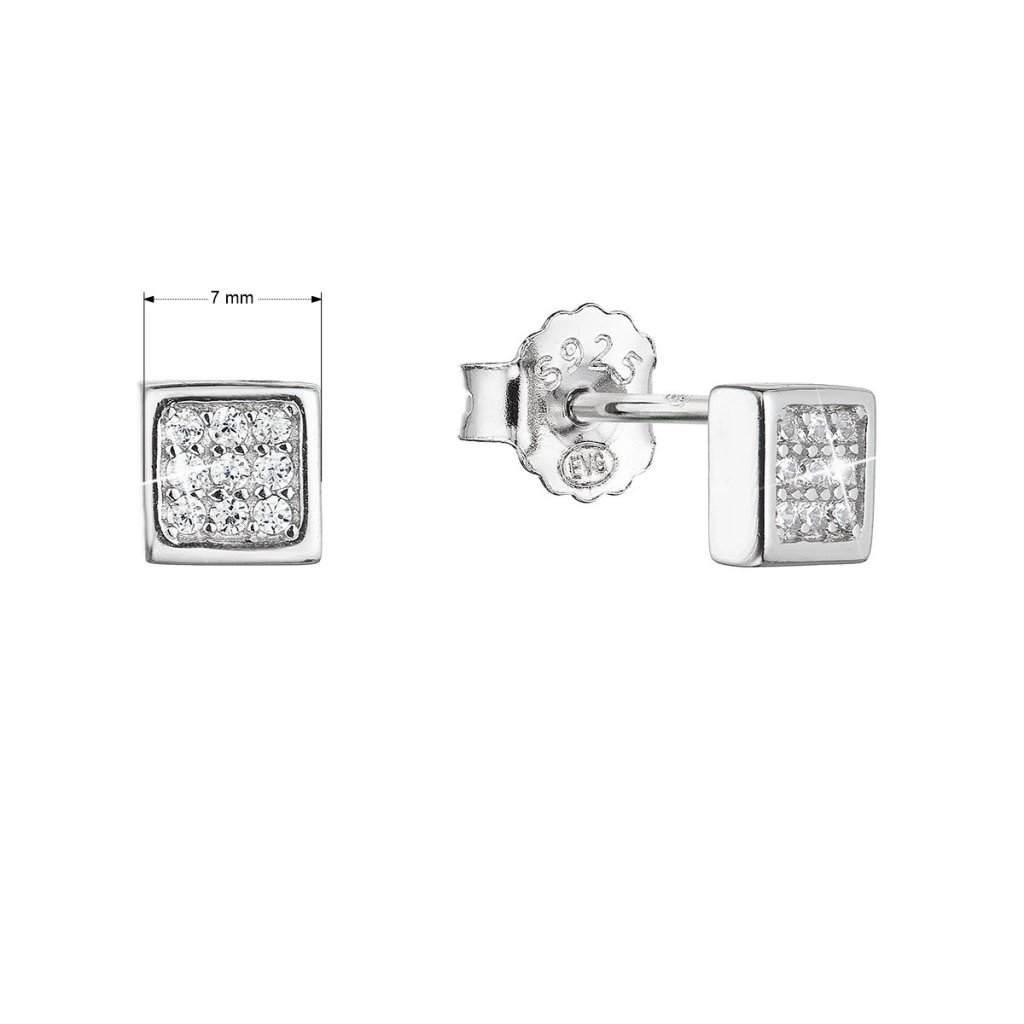 Strieborné náušnice kôstky štvorec biele zirkóny 11412.1
