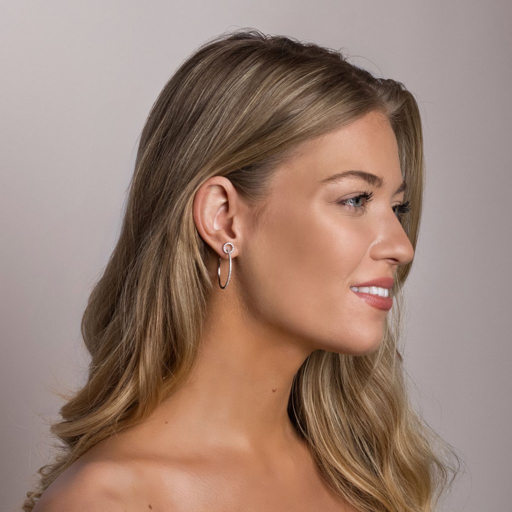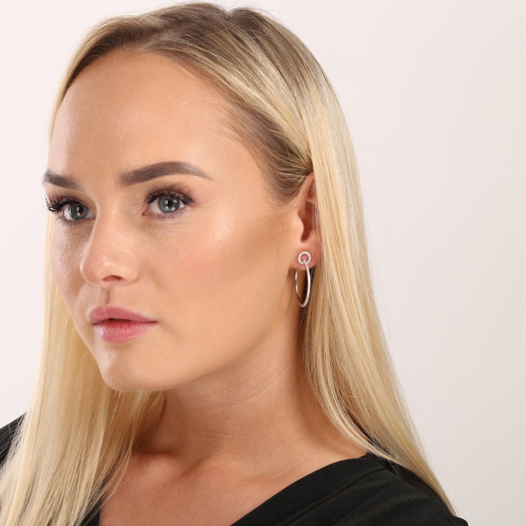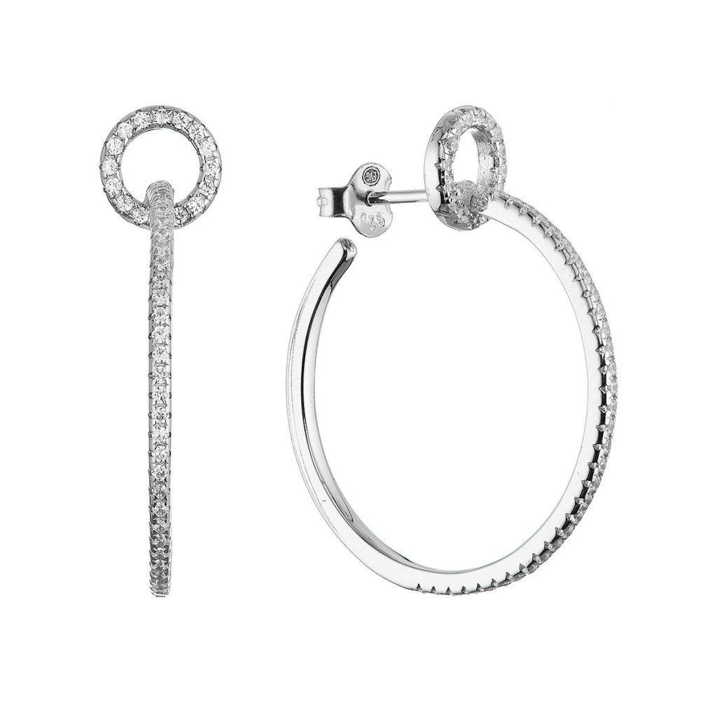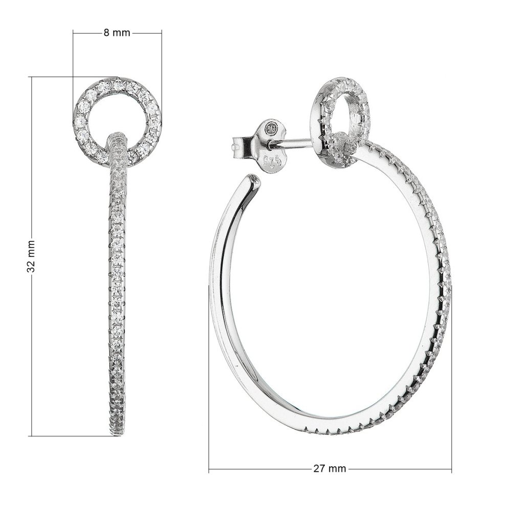 Oba kruhy sú bohato vysadené drobnými čírymi kamienkami vo farbe crystal , ktoré sa pri pohybe nádherne lesknú. Zapínanie na puzete zaručuje pohodlné a bezpečné nosenie. Rhodiová vrstva zvyšuje odolnosť náušníc proti poškriabaniu a sčernaniu, zároveň im dodáva luxusný lesk.