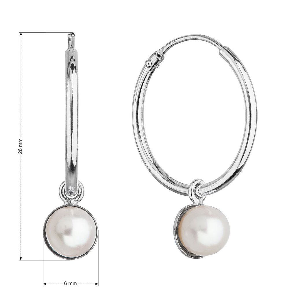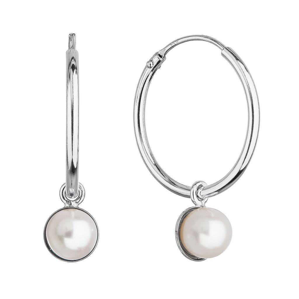 Strieborné náušnice kruhy s bielou riečnou perlou 21065.1