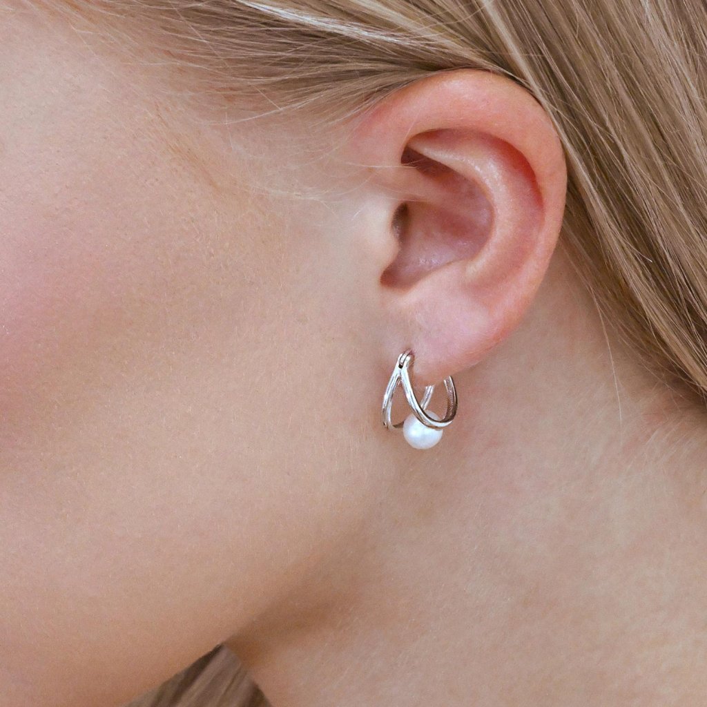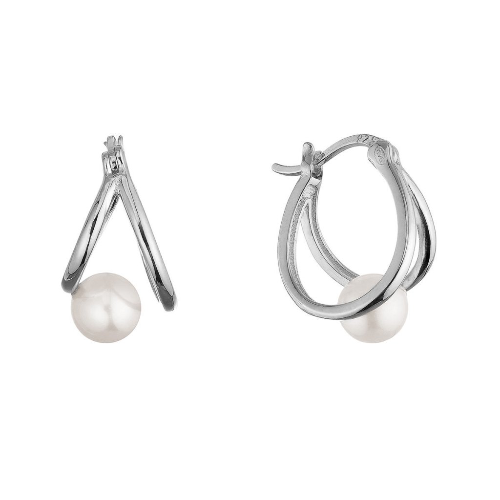 Strieborné náušnice kruhy s bielou riečnou perlou 21130.1