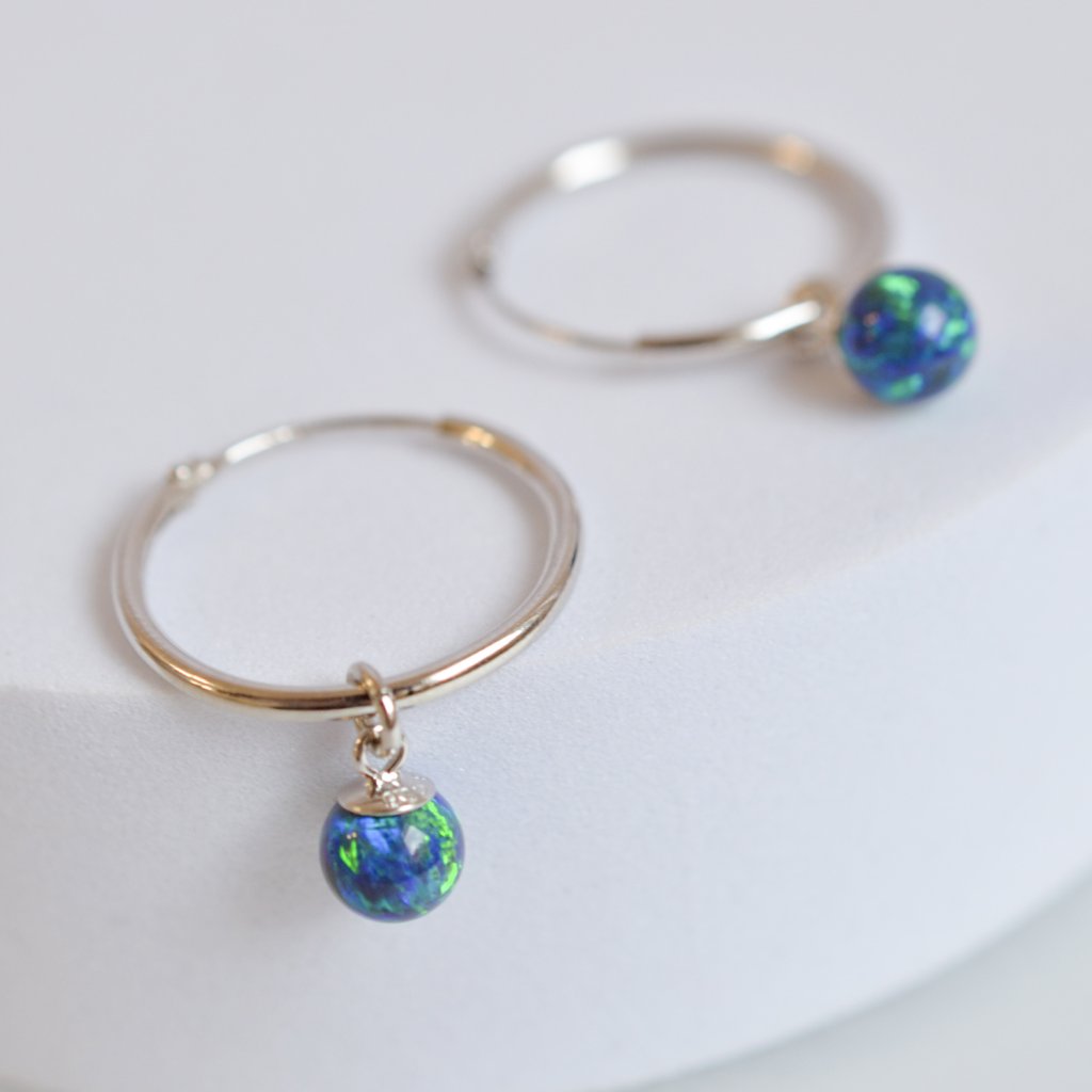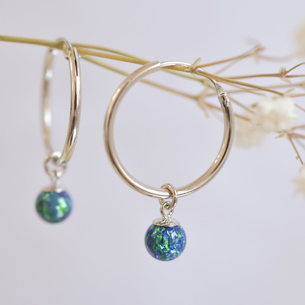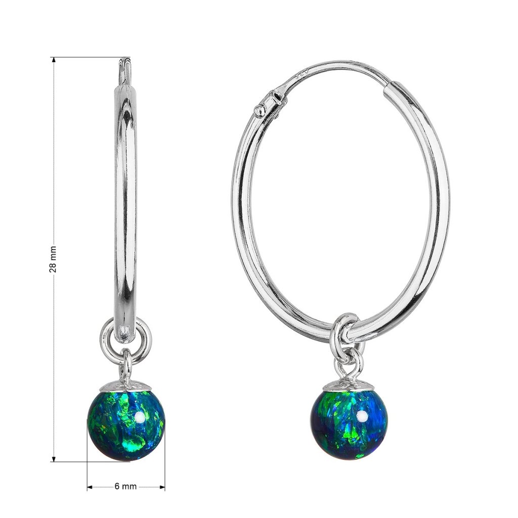 Strieborné náušnice kruhy s guličkou zo zeleného syntetického opálu 11410.3 green