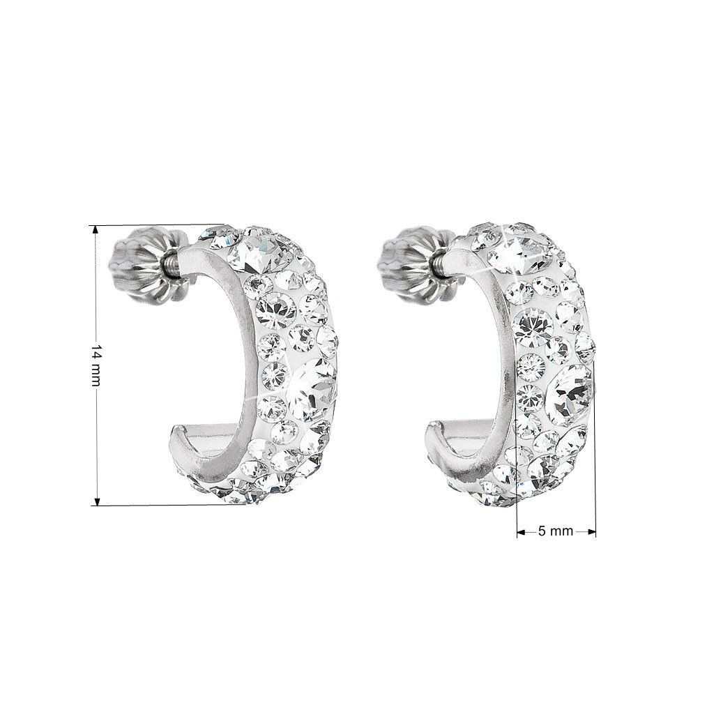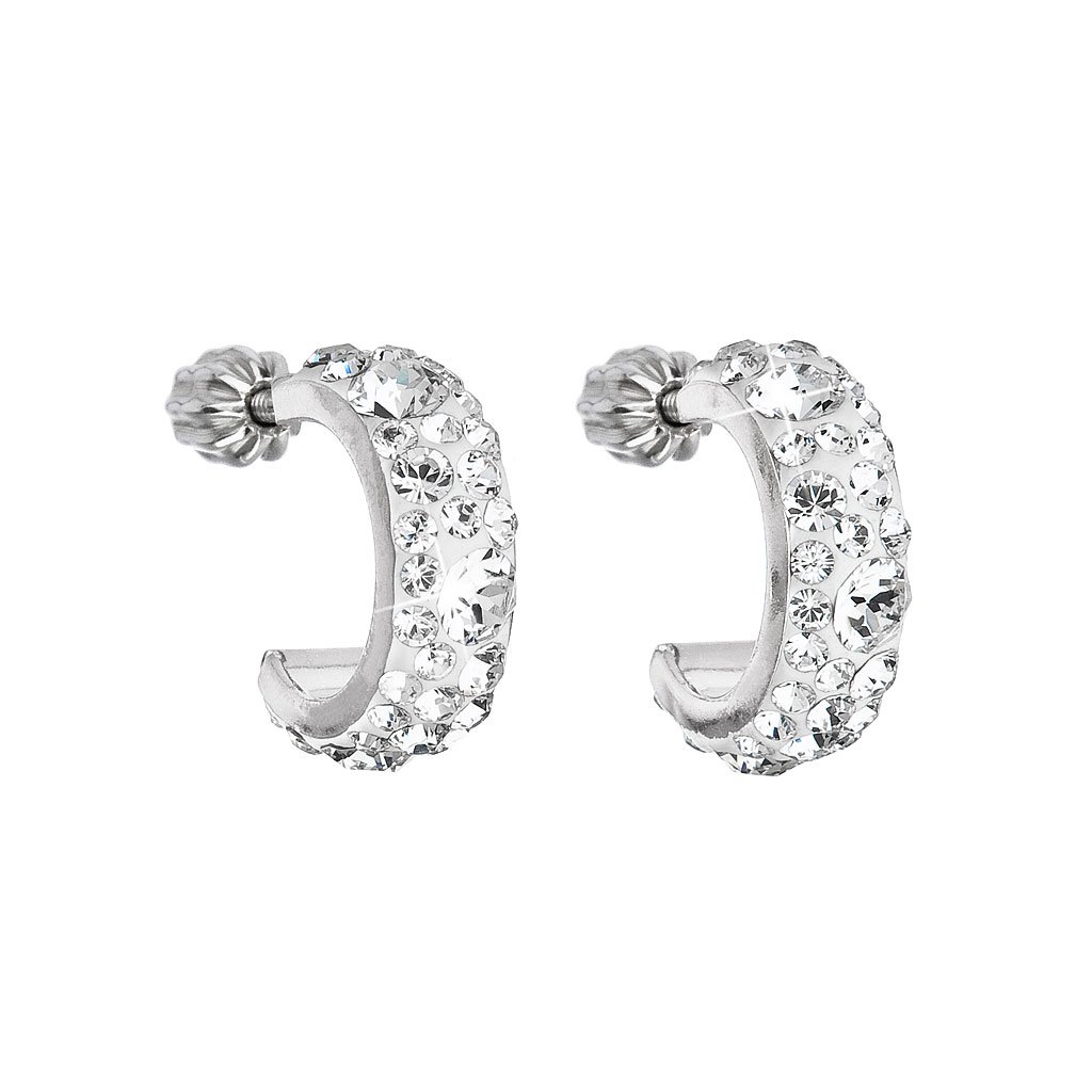 Strieborné náušnice kruhy s kryštálmi Swarovski biele polkruh 31118.1 kryštál