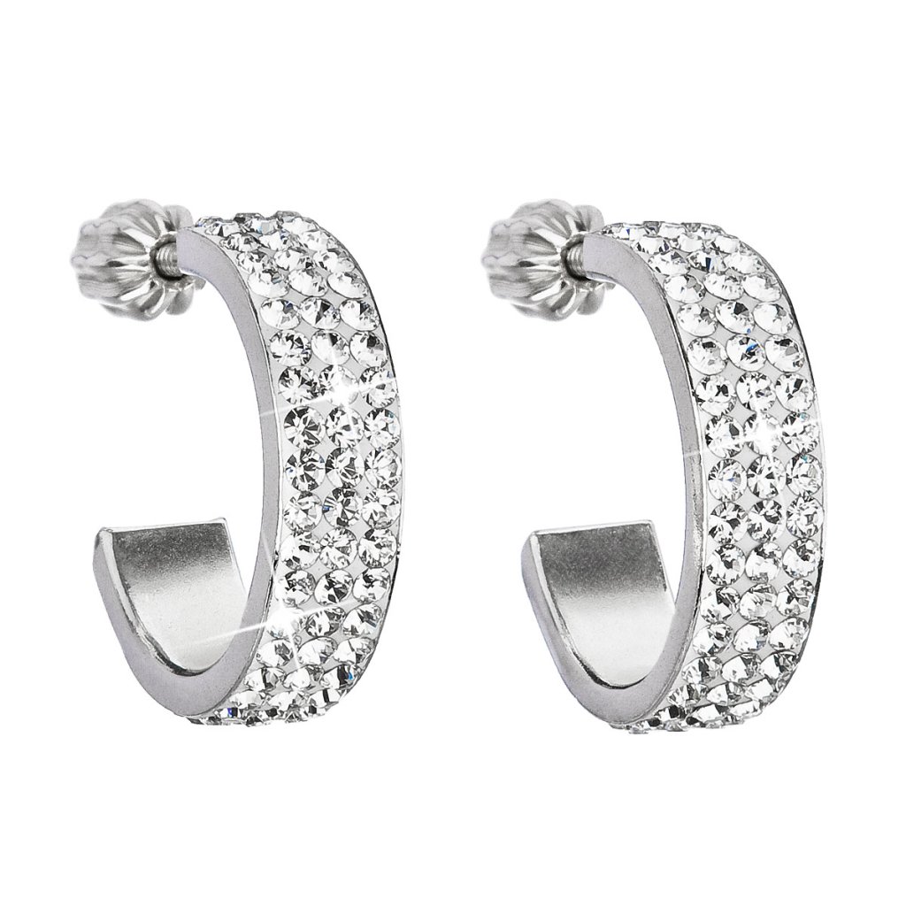 Strieborné náušnice kruhy s kryštálmi Swarovski biely polkruh 31119.1
