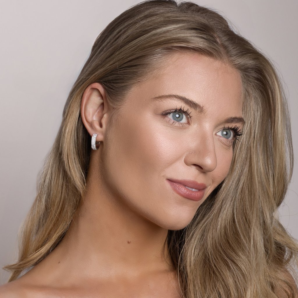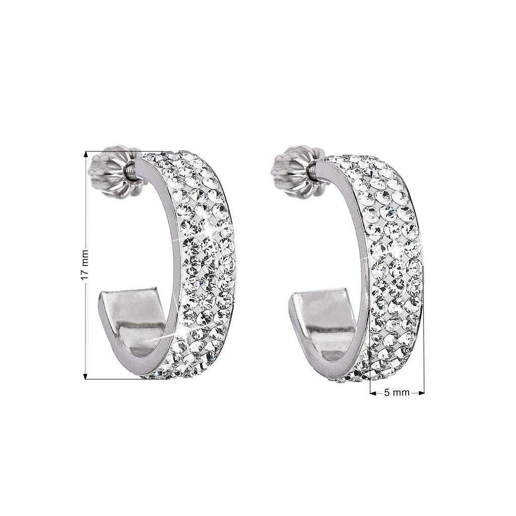 Parametre strieborných kruhových náušníc s kryštálmi Swarovski biely polkruh 31119.1