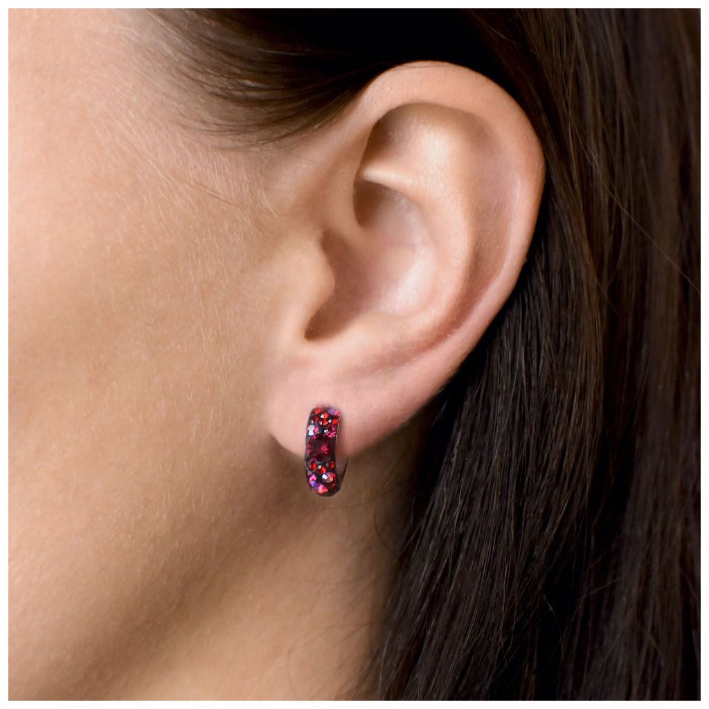 Parametre strieborných kruhových náušníc s kryštálmi Swarovski červený polkruh 31118.3 cherry