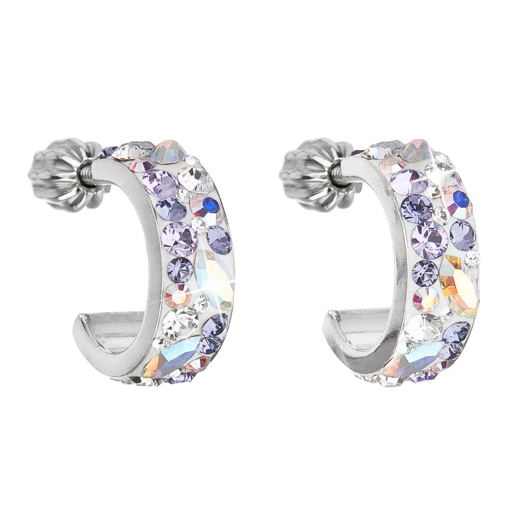 Strieborné náušnice kruhy s kryštálmi Swarovski fialový polkruh 31118.3 Violet