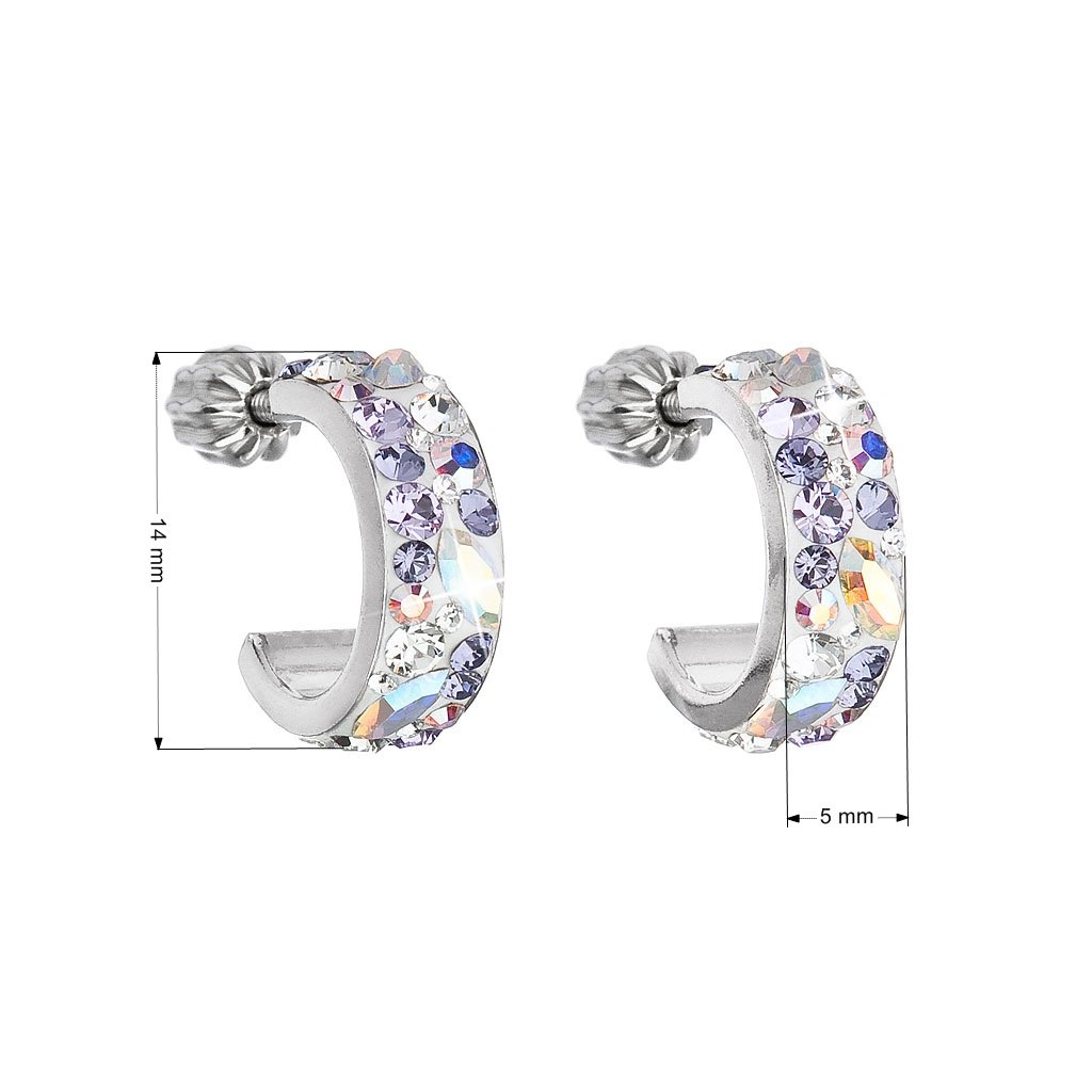 Parametre strieborných kruhových náušníc s kryštálmi Swarovski fialový polkruh 31118.3 violet