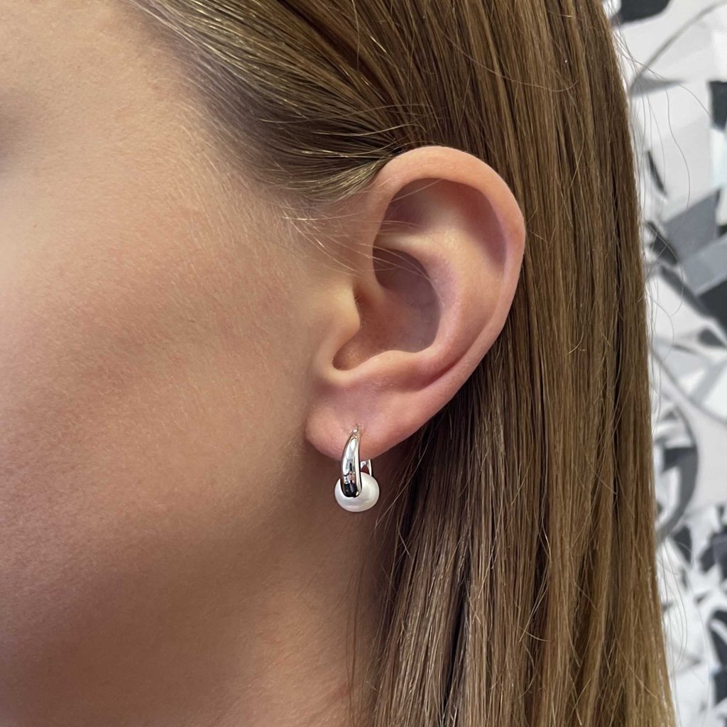 Strieborné náušnice kruhy s riečnou perlou bielej 21085.1