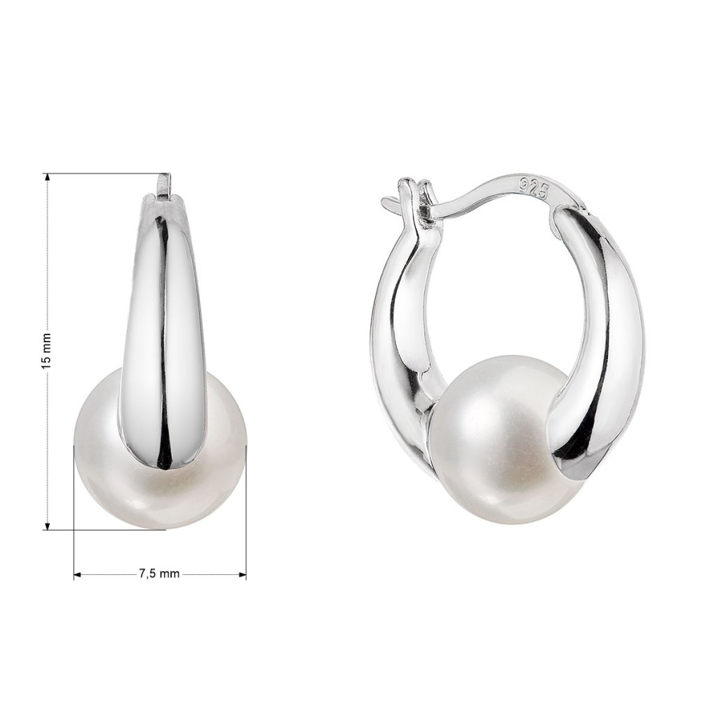 Strieborné kruhové náušnice s bielou riečnou perlou .Náušnice 21085.1 sú vyrobené zo striebra o rýdzosti 925/1000 s povrchovou úpravou ródiom. Zaujmú predovšetkým riečnu perlu kvality AA v bielej farbe. Veľkosť perly je 7,5 mm . Šperk neobsahuje prídavok niklu, a tak ho môžu nosiť aj ľudia náchylní na alergické reakcie. Náušnice majú zapínanie na francúzsky zámok, ktorý ich ochráni proti nechcenej strate.