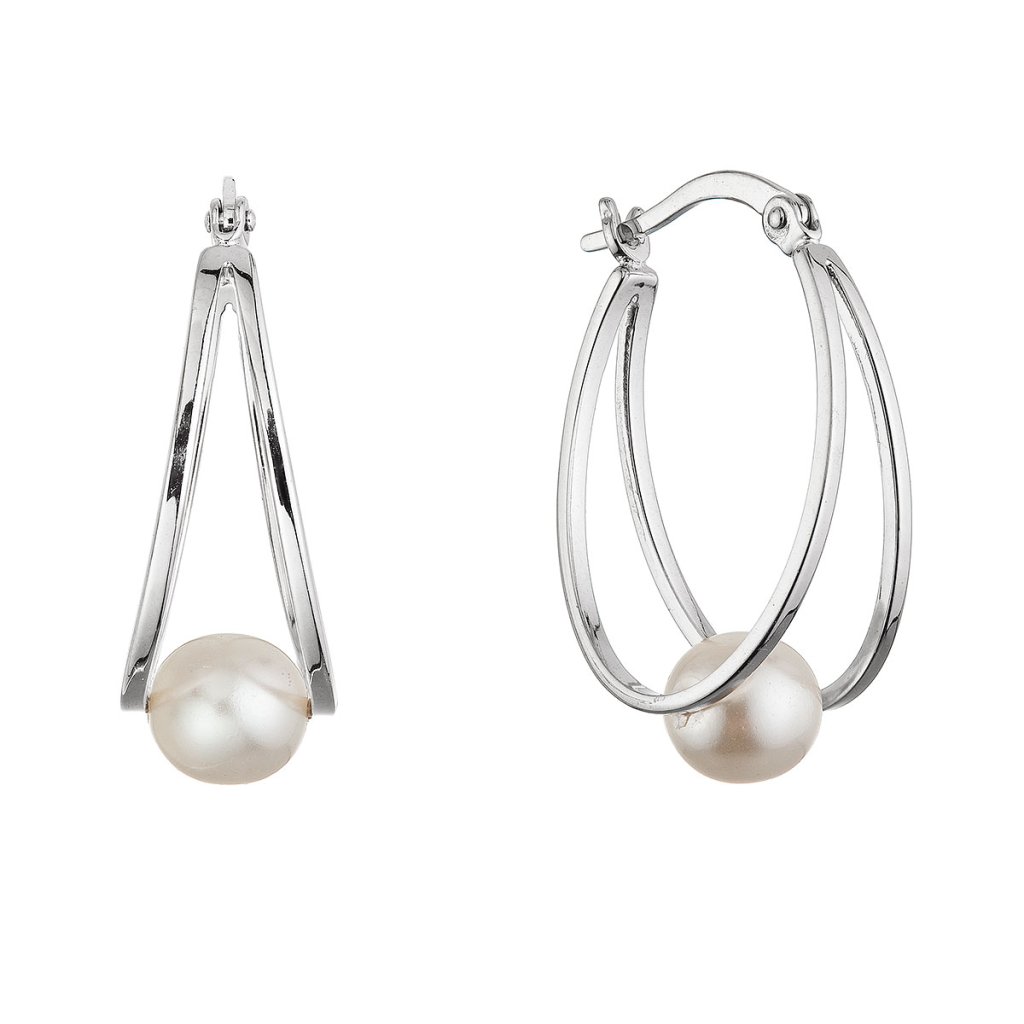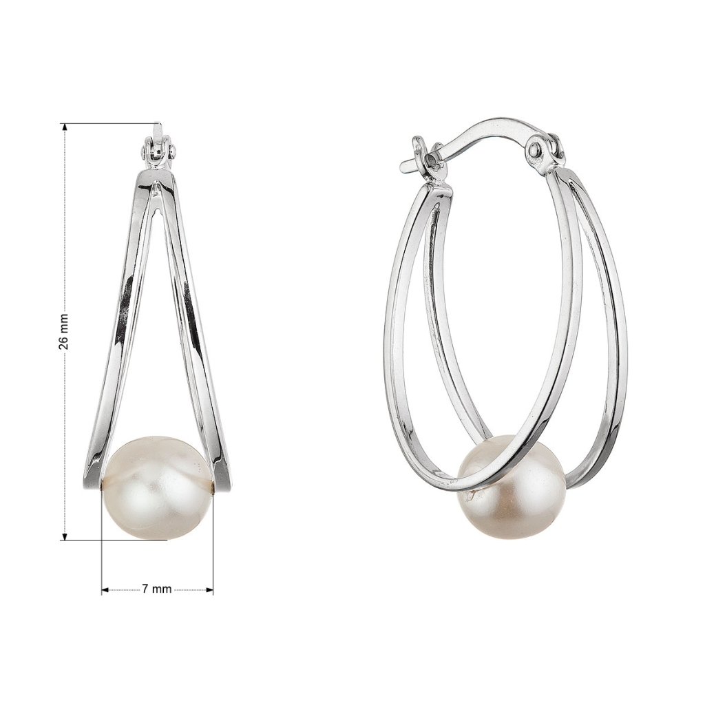 Strieborné náušnice kruhy so syntetickou perlou 31325.1