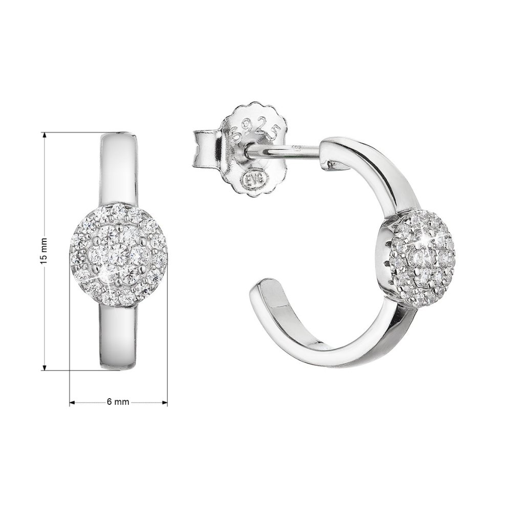 Parametre strieborných náušníc kruhov so zirkónmi 11437.1 crystal