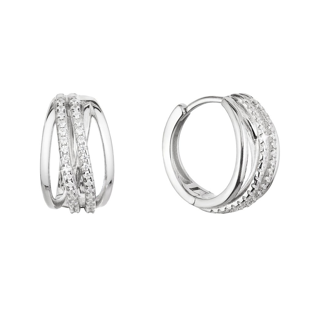 Strieborné náušnice kruhy so zirkónmi v bielej farbe 11462.1
