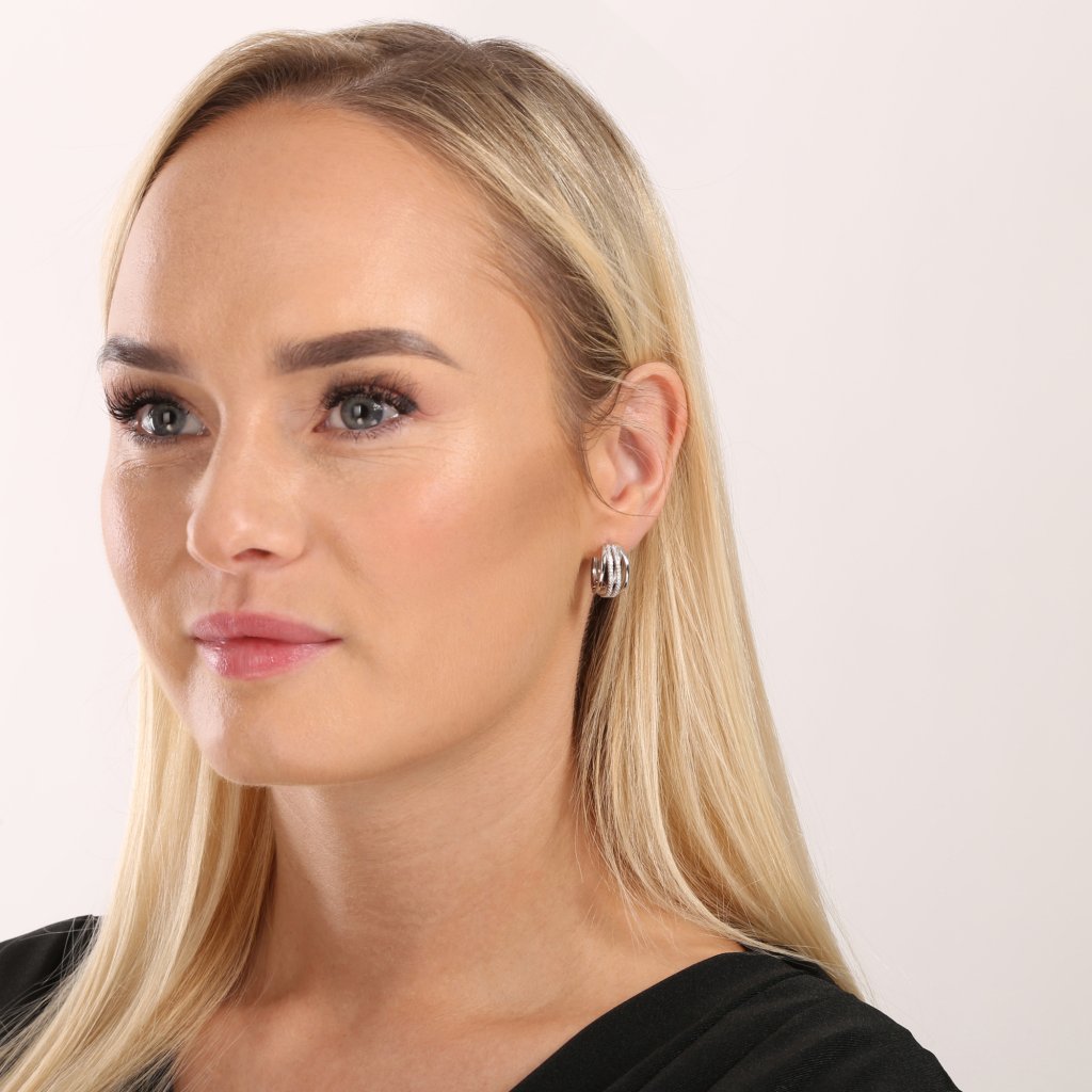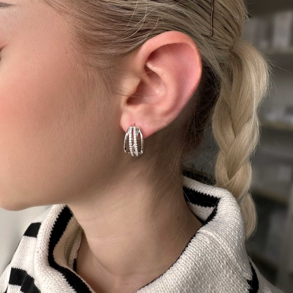 Iskrivý kruh elegancie: Zirkóny v striebornom objatí. Zvýraznite sa originálnymi a bohato zdobenými náušnicami v tvare kruhov s mnohými trblietavými zirkónmi.