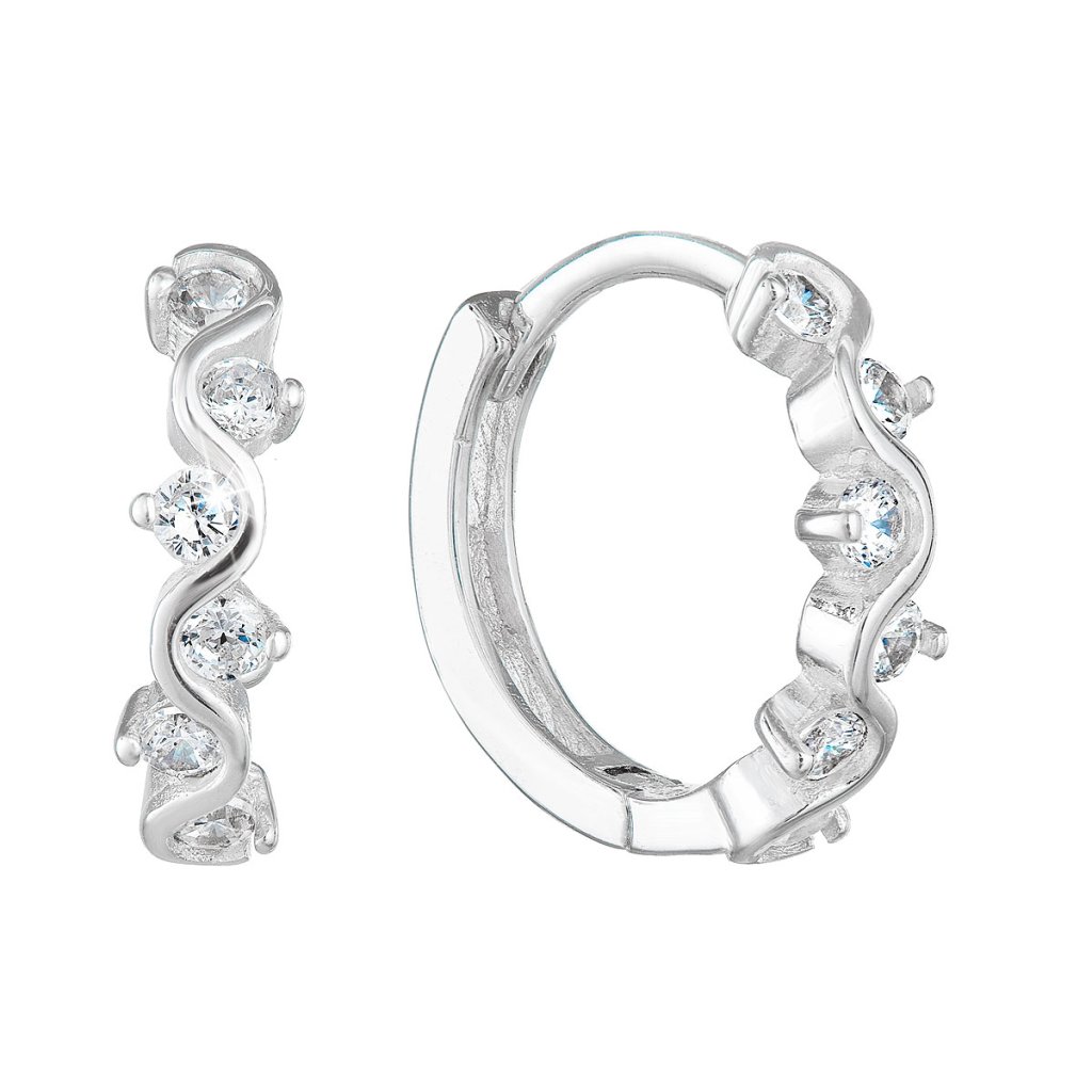 Oceňte životný úspech alebo jubileum. Šperk ako krásna spomienka...Kruhové náušnice 11244.1 tvoria striebro rýdzosti 925/1000 , na ktorého povrchu je nanesené ródium. Ródium šperk ochráni proti nechceným zmenám vzhľadu - sčernanie, zožltnutie alebo poškriabaniu. Náušnice majú dĺžku 14 mm. Na kruhovej náušnici je umiestnených šesť bielych zirkónov, medzi ktorými sa prepletá strieborný prúžok.