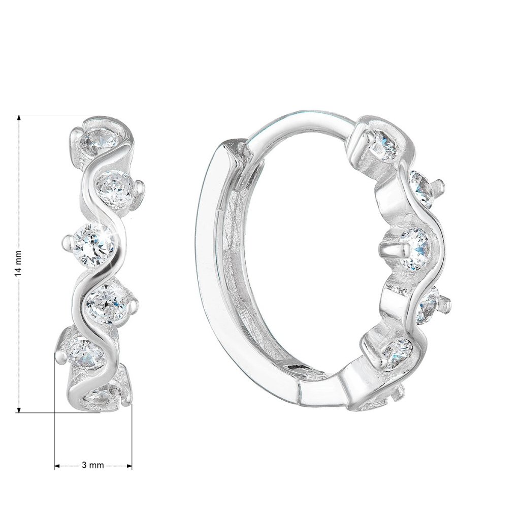 Parametre strieborných náušníc kruhy so zirkónom v bielej farbe 11244.1