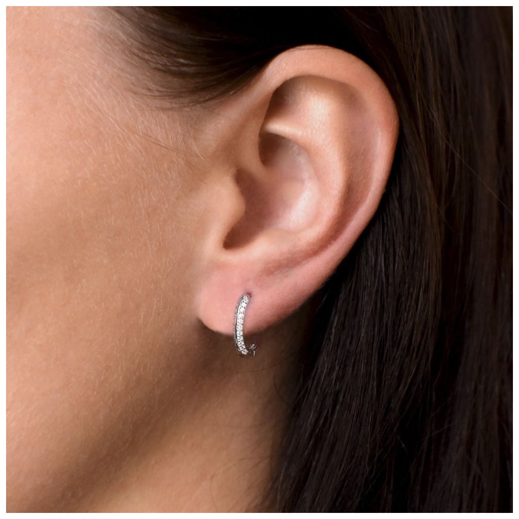 Uzučký skosený krúžok, ktorý je po stranách vysadený zirkónmi, bude vyzerať vo vašich ušiach skvostne.