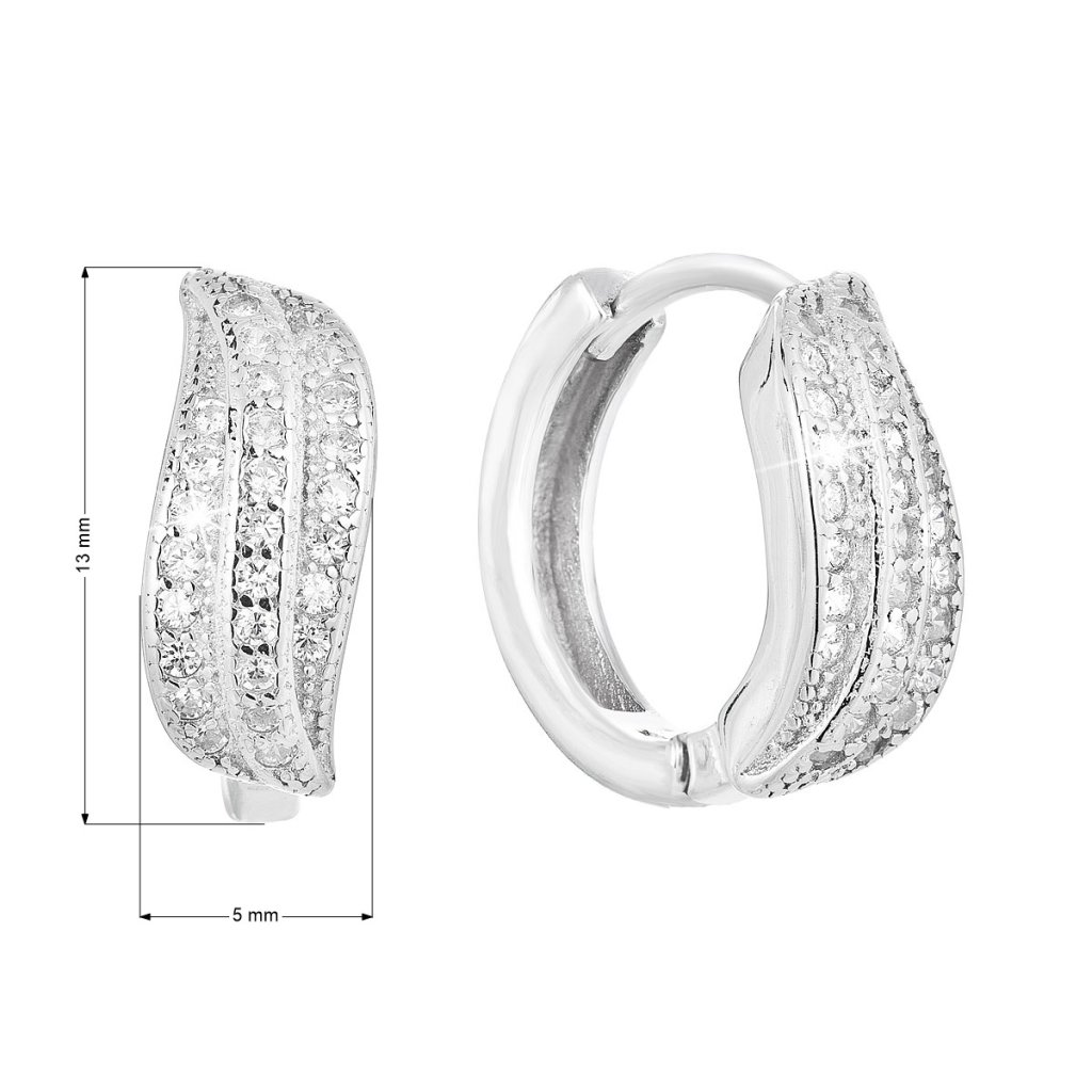 Parametre strieborných náušníc kruhy so zirkónom v bielej farbe 11326.1