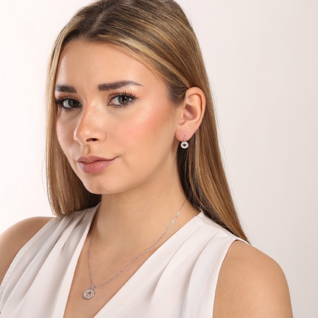 Náušnice okrúhle ako koliesko ananásu. Vyrobené z prvotriedneho rhodiovaného striebra s praktickým zapínaním na klapku sú tieto náušnice pripravené stať sa vašou tajnou zbraňou na každú príležitosť. Či už je to pracovné jednanie alebo večerný koktail – s týmito krúžkami urobíte vždy ten správny dojem. Rad trblietavých kamienkov po obvode kruhu vytvára efekt nepretržitého iskrenia, vďaka ktorému budete žiariť v každom svetle.