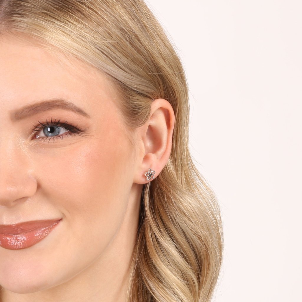 Tieto nádherné náušnice v tvare kvietkov sú ideálnym doplnkom pre každú ženu, ktorá miluje kvetinové motívy. Ich svieži design dodá vášmu outfitu jemný a romantický vzhľad.Sú vyrobené zo striebra o rýdzosti 925/1000 a sú opatrené vrstvou ródia , ktorá šperk ochráni pred sčernením, zožltnutím alebo poškriabaním a majú klasické puzetové zapínanie .