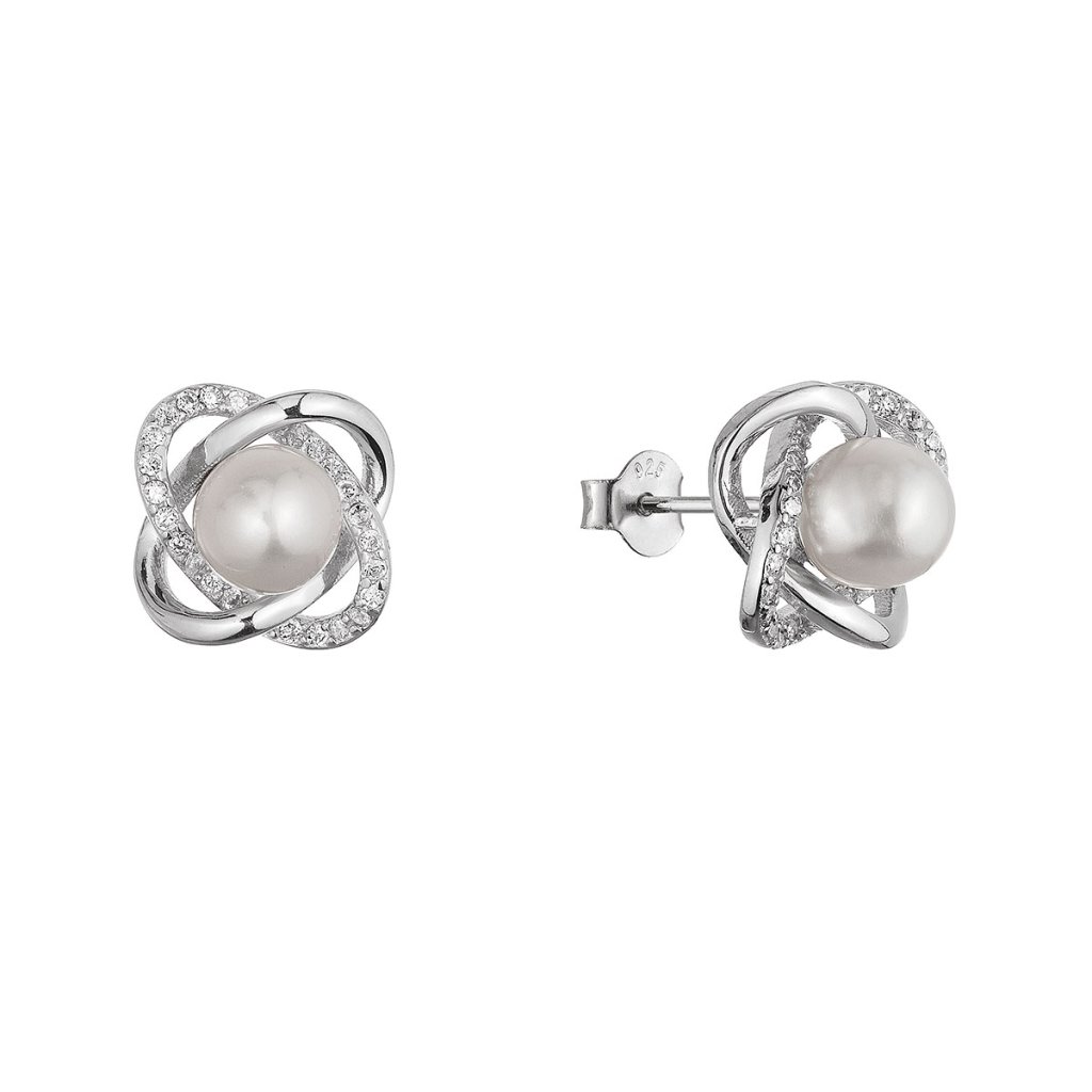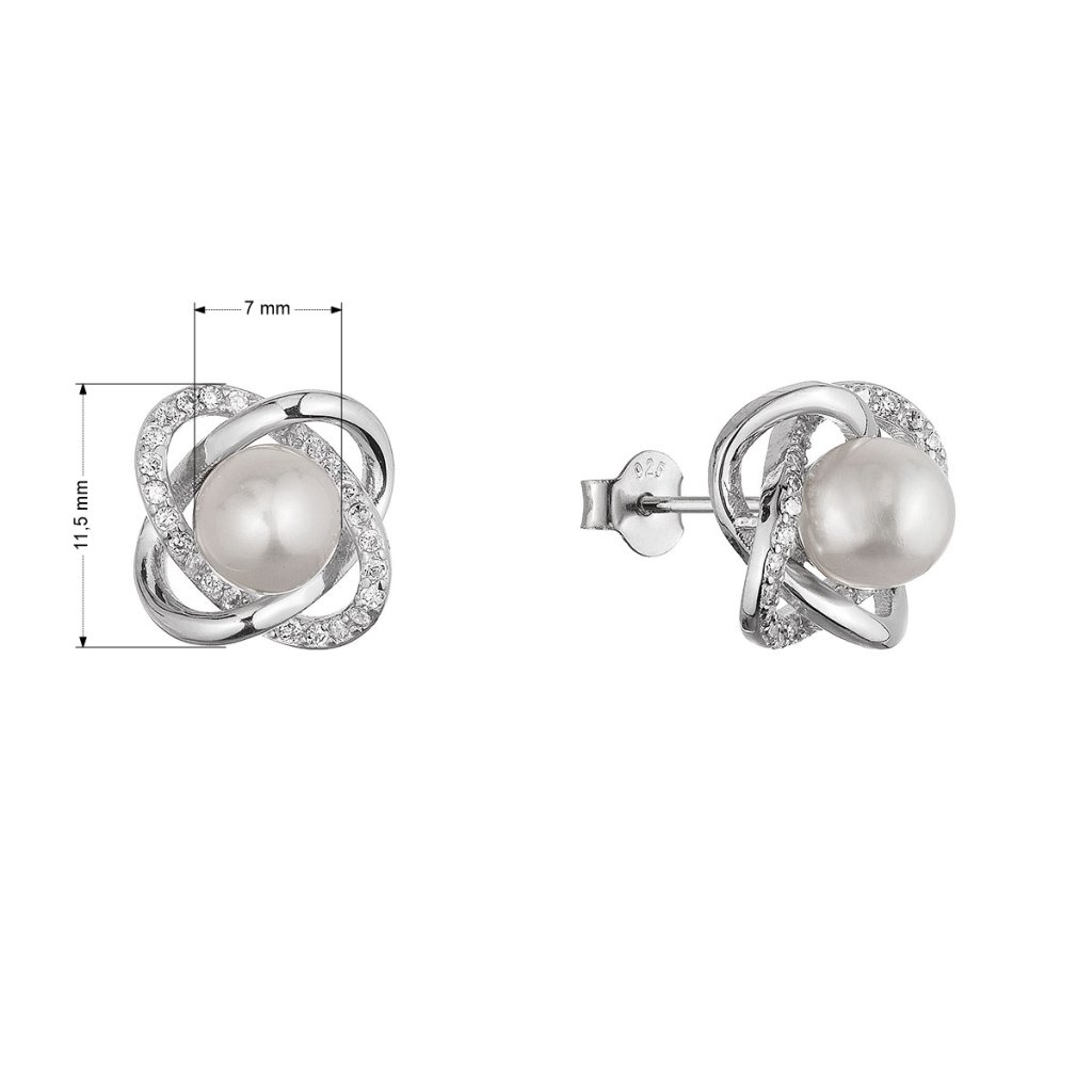 Strieborné náušnice kvietky s bielou riečnou perlou 21114.1