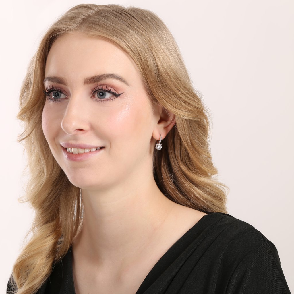 Šperk je vyrobený zo striebra rýdzosti 925/1000, ktorého povrch je upravený ródiom. Rhodiová úprava chráni šperk pred sčernením a zvýrazňuje jeho lesk. Kvetinový dizajn tvorí veľký centrálny okrúhly zirkón, ktorý je lemovaný jemnými okvetnými plátkami z menších bielych zirkónov. Precízne vysadená predná strana klapky dodáva šperku mimoriadny lesk a eleganciu. Jemný tvar kvety oslní ženy bez rozdielu veku.
